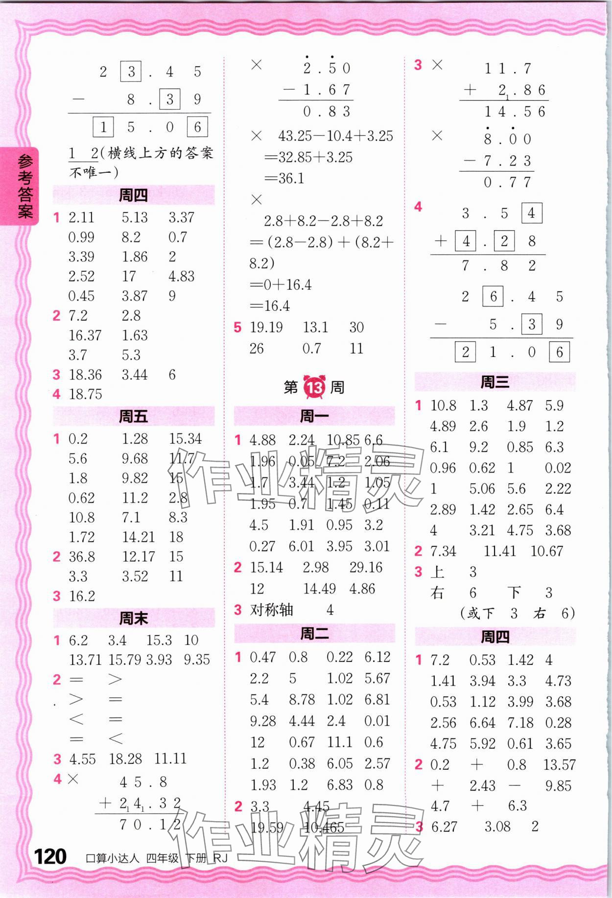 注:目前有些书本章节名称可能整理的还不是很完善,但都是按照顺序排列的,请同学们按照顺序仔细查找。练习册 2024年王朝霞口算小达人四年级数学下册人教版 答案主要是用来给同学们做完题方便对答案用的,请勿直接抄袭。
