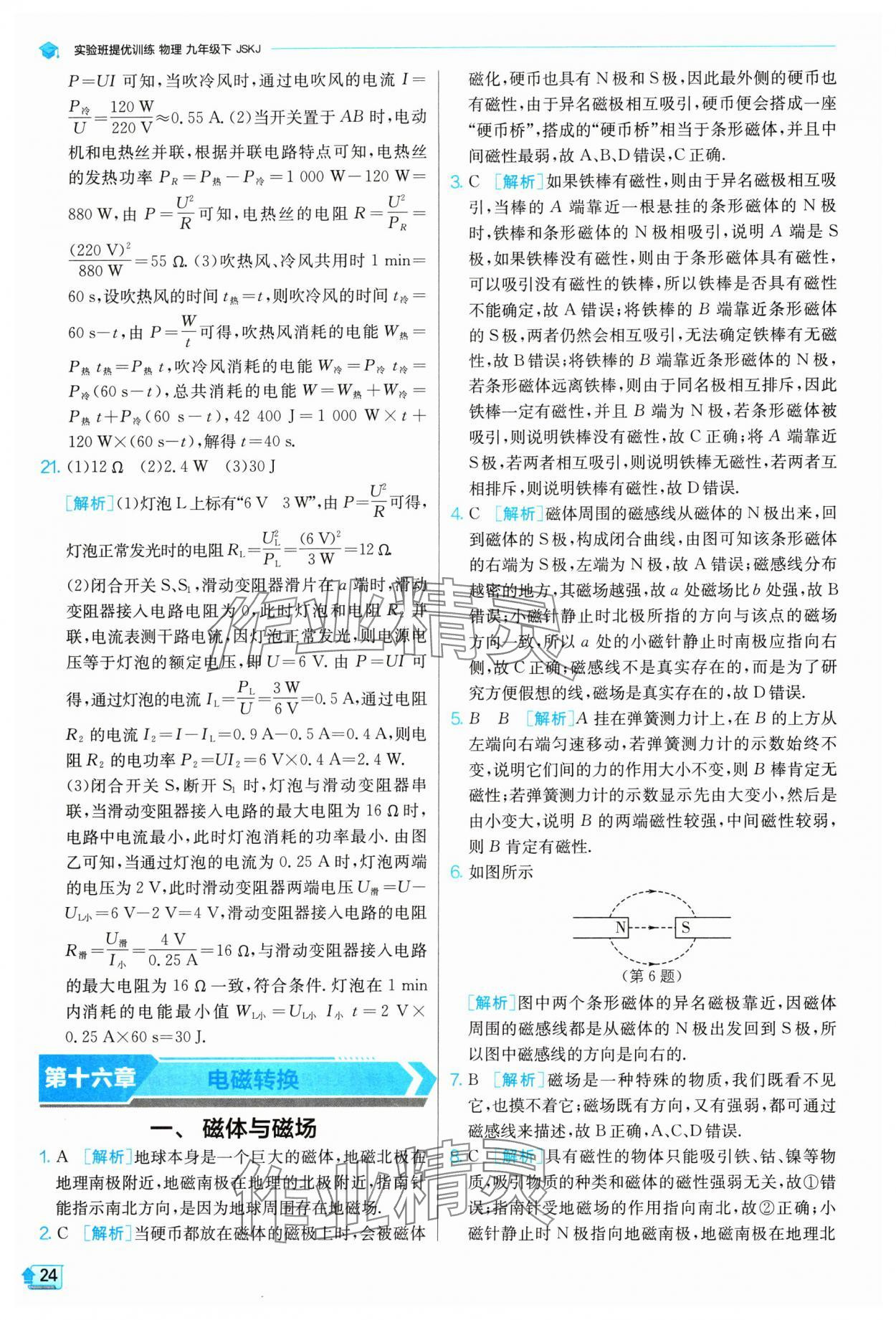注:目前有些书本章节名称可能整理的还不是很完善,但都是按照顺序排列的,请同学们按照顺序仔细查找。练习册 2024年实验班提优训练九年级物理下册苏科版 答案主要是用来给同学们做完题方便对答案用的,请勿直接抄袭。