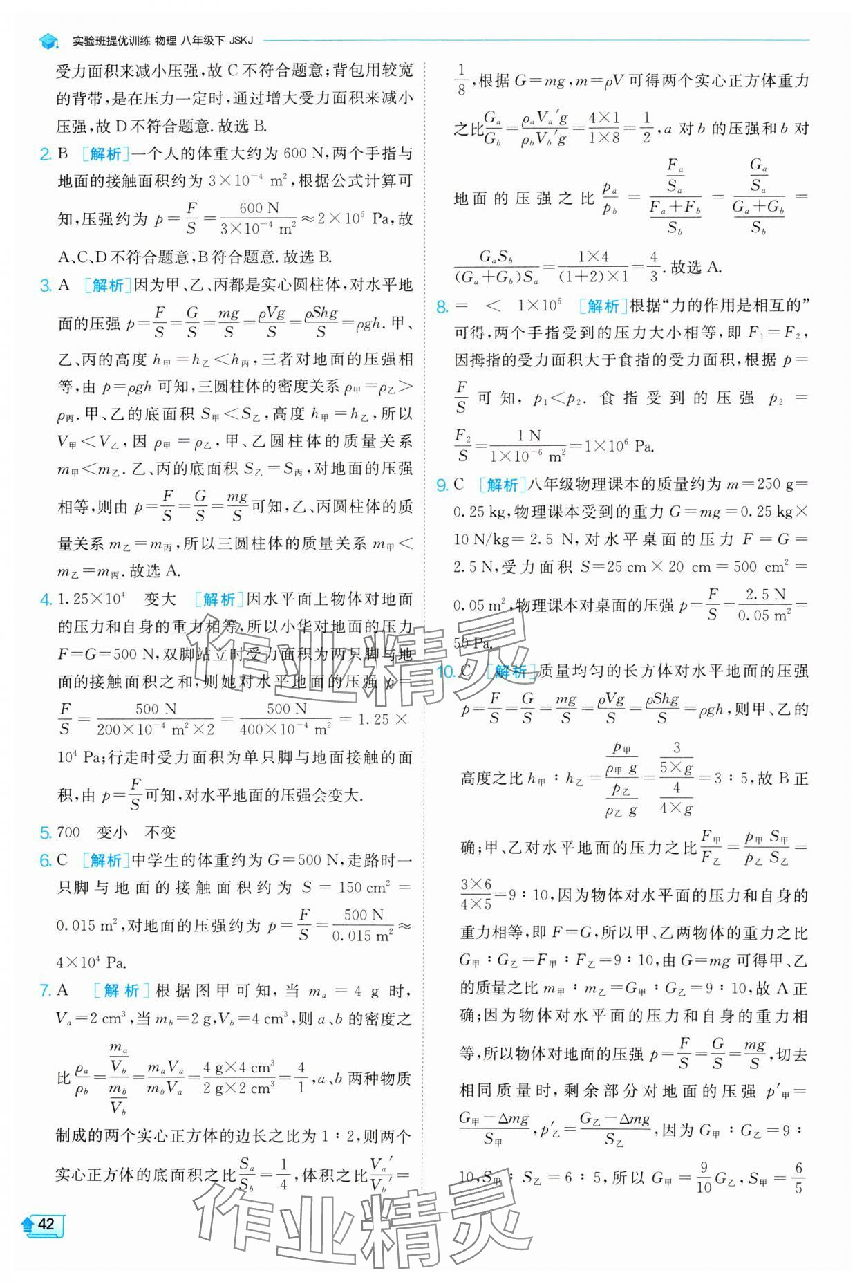 注:目前有些书本章节名称可能整理的还不是很完善,但都是按照顺序排列的,请同学们按照顺序仔细查找。练习册 2024年实验班提优训练八年级物理下册苏科版 答案主要是用来给同学们做完题方便对答案用的,请勿直接抄袭。