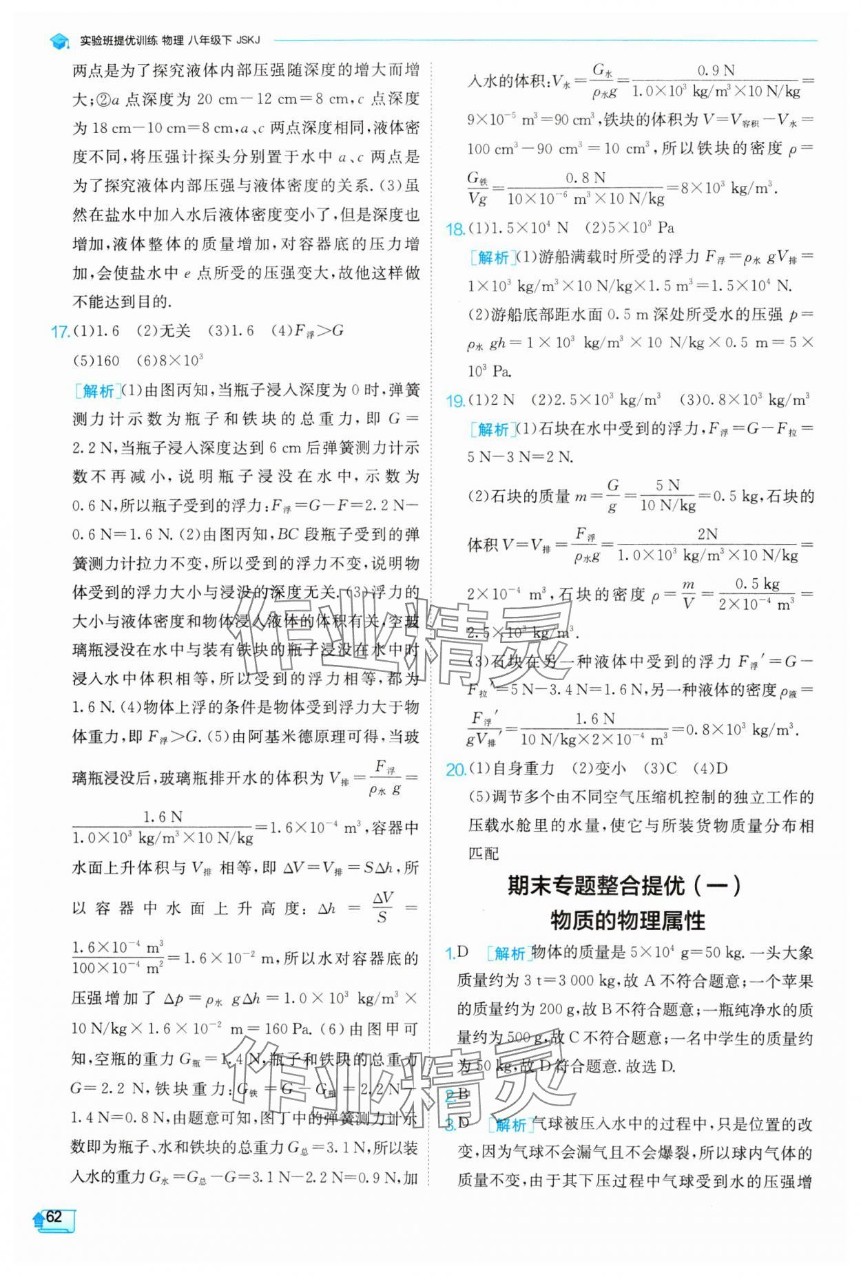 注:目前有些书本章节名称可能整理的还不是很完善,但都是按照顺序排列的,请同学们按照顺序仔细查找。练习册 2024年实验班提优训练八年级物理下册苏科版 答案主要是用来给同学们做完题方便对答案用的,请勿直接抄袭。