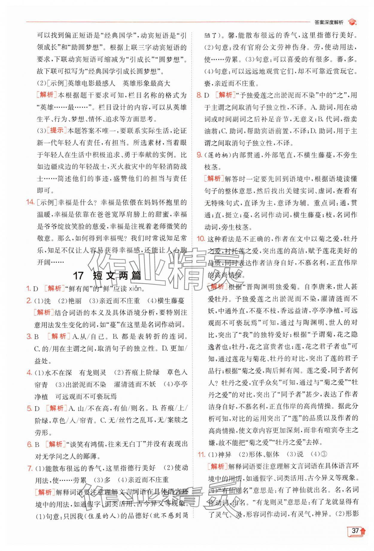 注:目前有些书本章节名称可能整理的还不是很完善,但都是按照顺序排列的,请同学们按照顺序仔细查找。练习册 2024年实验班提优训练七年级语文下册人教版江苏专版 答案主要是用来给同学们做完题方便对答案用的,请勿直接抄袭。