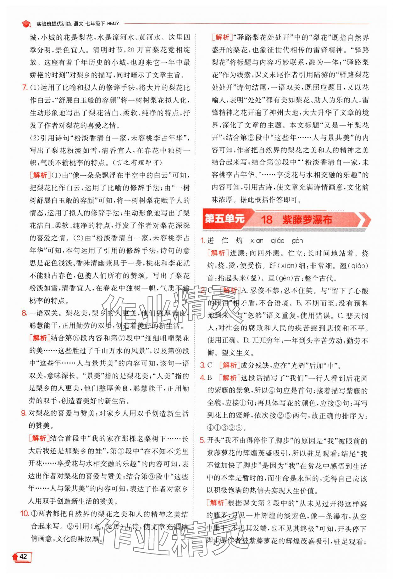 注:目前有些书本章节名称可能整理的还不是很完善,但都是按照顺序排列的,请同学们按照顺序仔细查找。练习册 2024年实验班提优训练七年级语文下册人教版江苏专版 答案主要是用来给同学们做完题方便对答案用的,请勿直接抄袭。