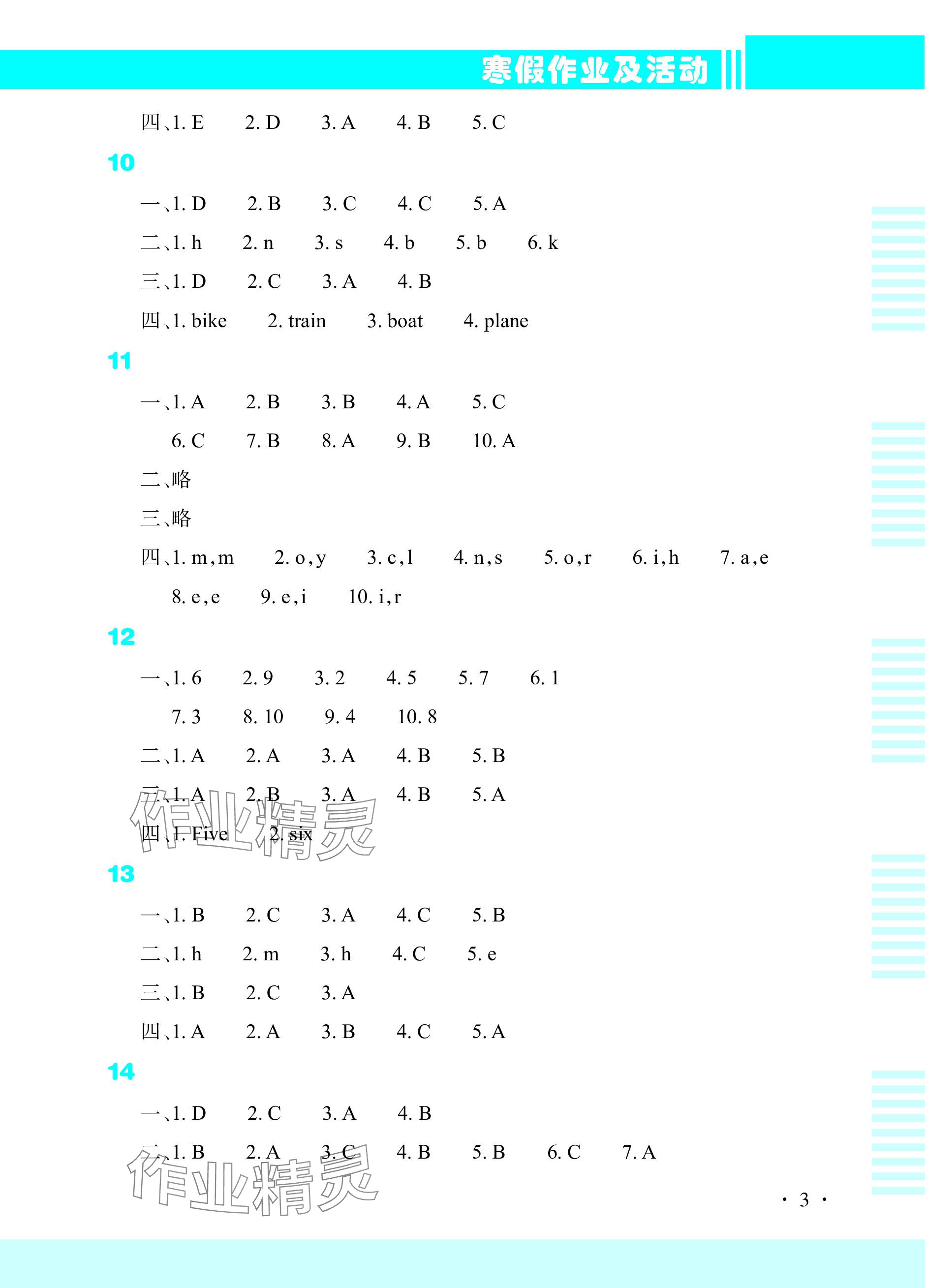 注:目前有些书本章节名称可能整理的还不是很完善,但都是按照顺序排列的,请同学们按照顺序仔细查找。练习册 2024年寒假作业及活动三年级英语 答案主要是用来给同学们做完题方便对答案用的,请勿直接抄袭。
