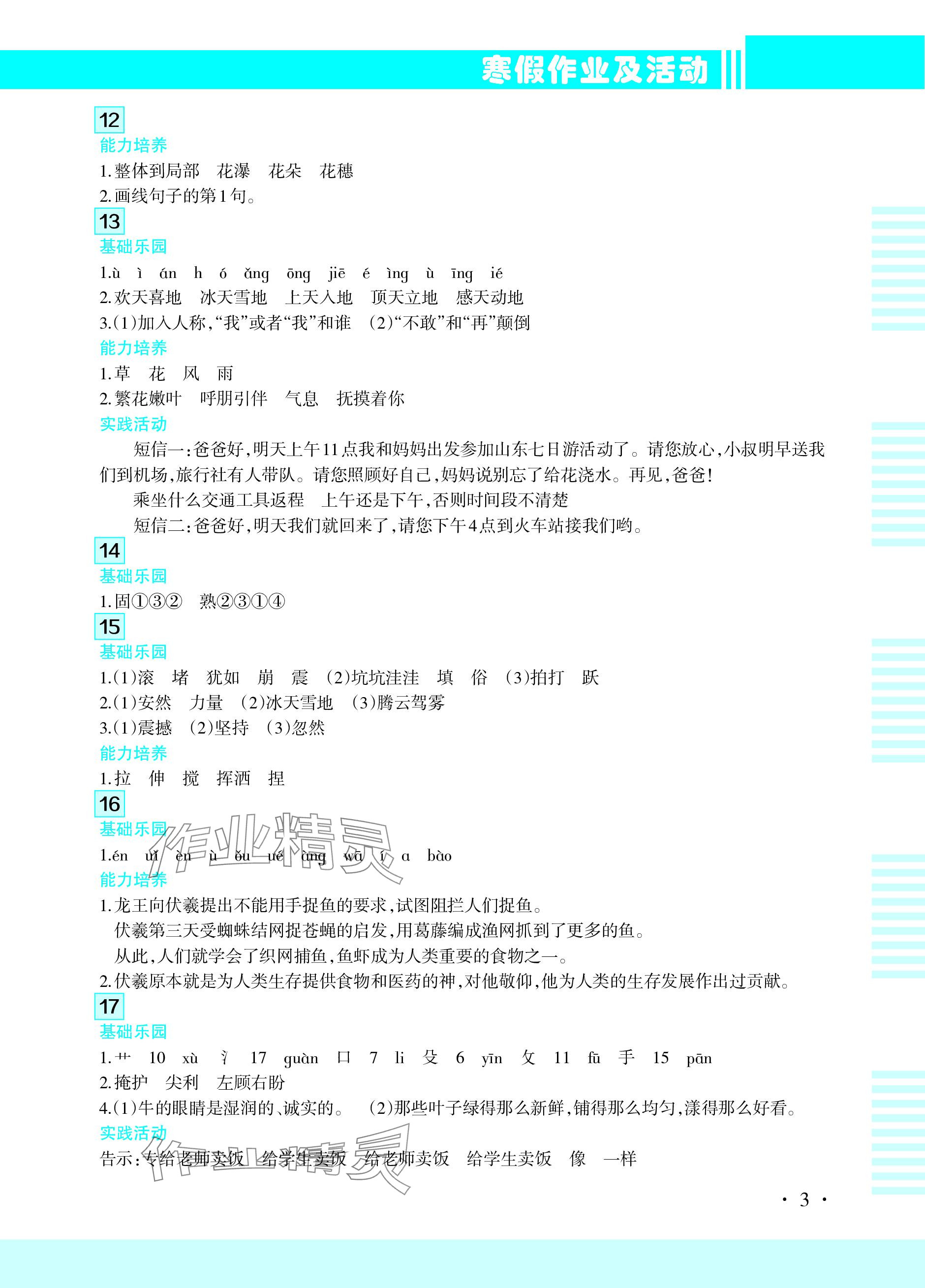 注:目前有些书本章节名称可能整理的还不是很完善,但都是按照顺序排列的,请同学们按照顺序仔细查找。练习册 2024年寒假作业及活动四年级语文 答案主要是用来给同学们做完题方便对答案用的,请勿直接抄袭。