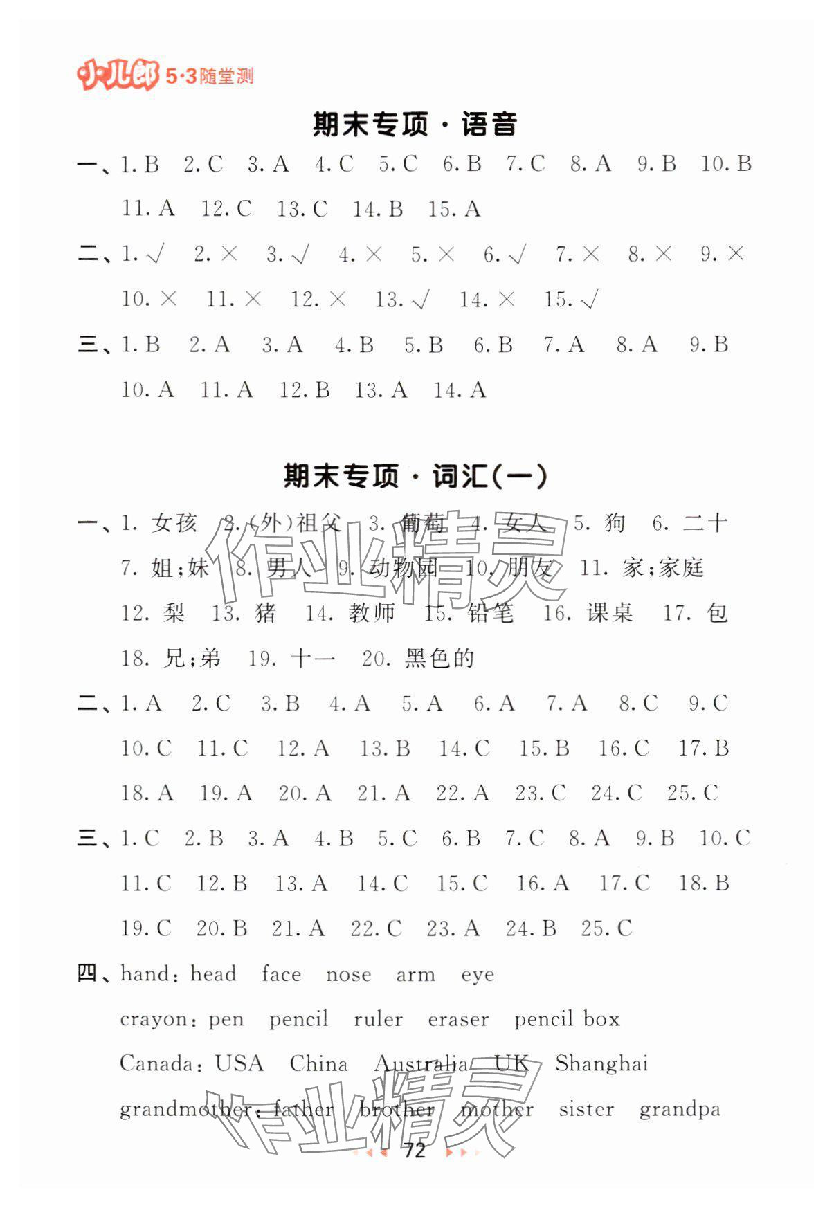注:目前有些书本章节名称可能整理的还不是很完善,但都是按照顺序排列的,请同学们按照顺序仔细查找。练习册 2024年53随堂测三年级英语下册人教PEP版 答案主要是用来给同学们做完题方便对答案用的,请勿直接抄袭。
