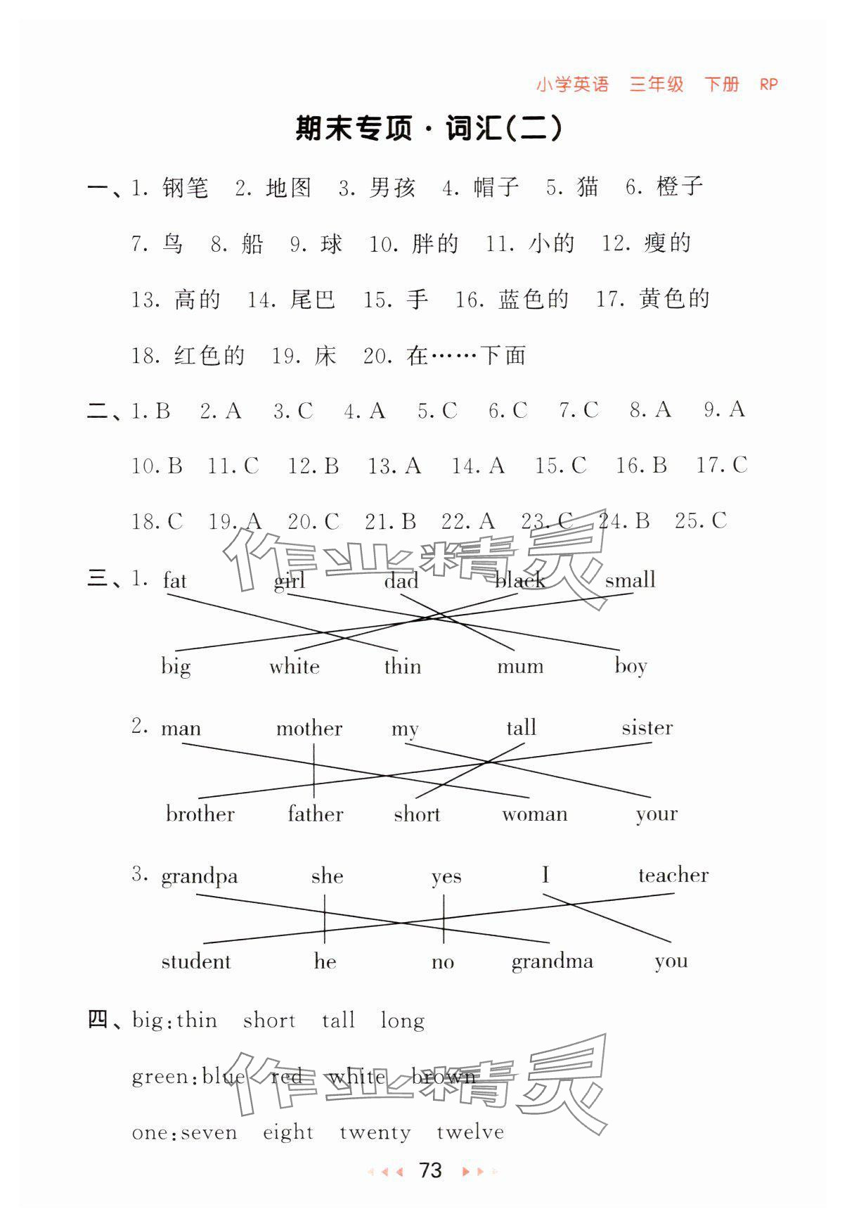 注:目前有些书本章节名称可能整理的还不是很完善,但都是按照顺序排列的,请同学们按照顺序仔细查找。练习册 2024年53随堂测三年级英语下册人教PEP版 答案主要是用来给同学们做完题方便对答案用的,请勿直接抄袭。