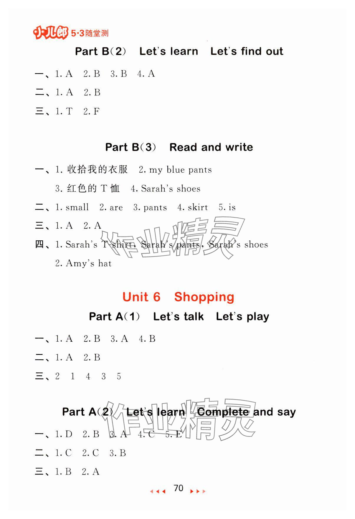 注:目前有些书本章节名称可能整理的还不是很完善,但都是按照顺序排列的,请同学们按照顺序仔细查找。练习册 2024年53随堂测四年级英语下册人教PEP版 答案主要是用来给同学们做完题方便对答案用的,请勿直接抄袭。