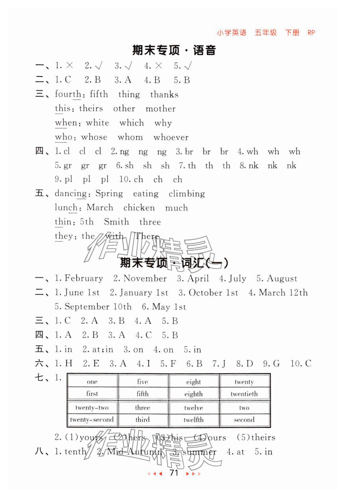 注:目前有些书本章节名称可能整理的还不是很完善,但都是按照顺序排列的,请同学们按照顺序仔细查找。练习册 2024年53随堂测五年级英语下册人教PEP版 答案主要是用来给同学们做完题方便对答案用的,请勿直接抄袭。