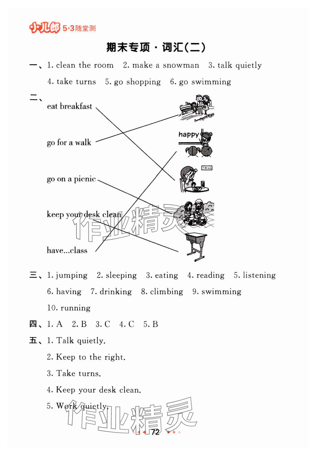 注:目前有些书本章节名称可能整理的还不是很完善,但都是按照顺序排列的,请同学们按照顺序仔细查找。练习册 2024年53随堂测五年级英语下册人教PEP版 答案主要是用来给同学们做完题方便对答案用的,请勿直接抄袭。