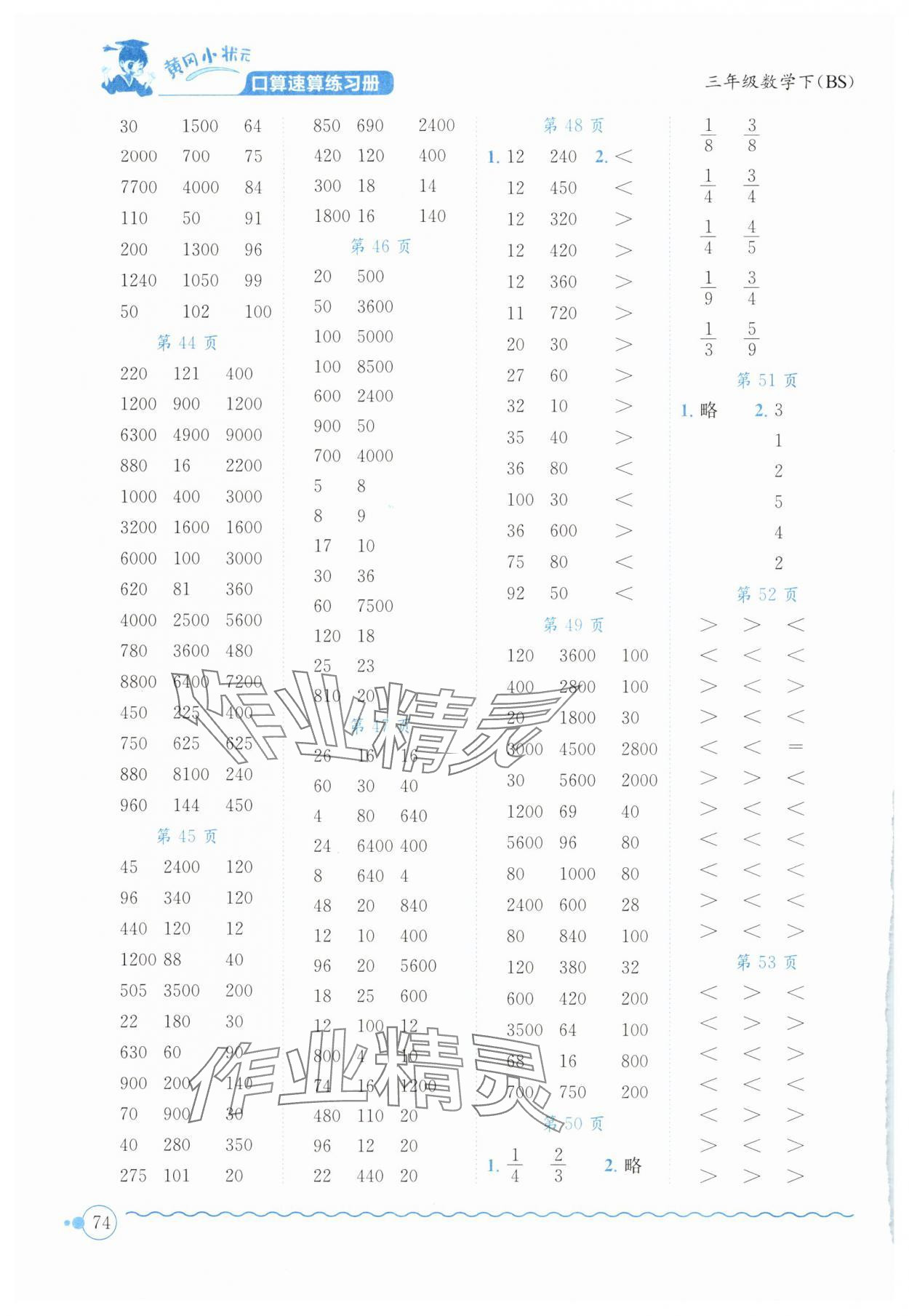 注:目前有些书本章节名称可能整理的还不是很完善,但都是按照顺序排列的,请同学们按照顺序仔细查找。练习册 2024年黄冈小状元口算速算练习册三年级数学下册北师大版 答案主要是用来给同学们做完题方便对答案用的,请勿直接抄袭。
