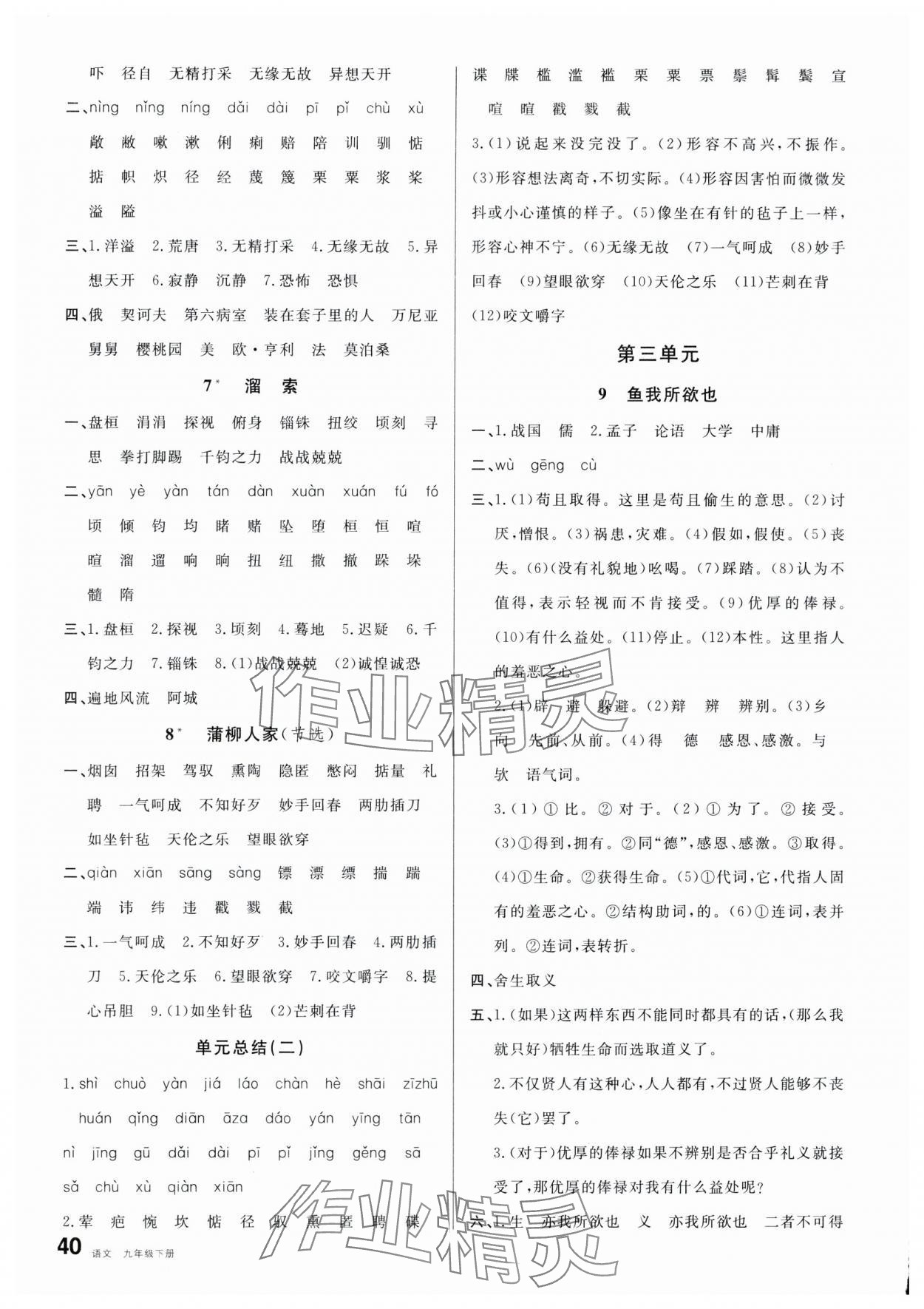 注:目前有些书本章节名称可能整理的还不是很完善,但都是按照顺序排列的,请同学们按照顺序仔细查找。练习册 2024年名校课堂九年级语文下册人教版包头专版 答案主要是用来给同学们做完题方便对答案用的,请勿直接抄袭。