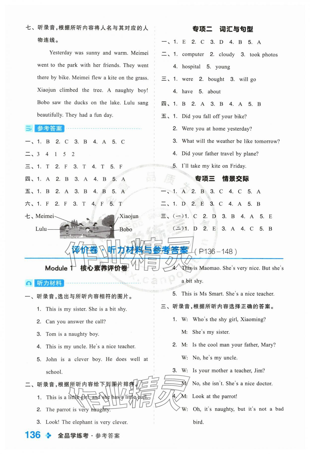注:目前有些书本章节名称可能整理的还不是很完善,但都是按照顺序排列的,请同学们按照顺序仔细查找。练习册 2024年全品学练考四年级英语下册外研版 答案主要是用来给同学们做完题方便对答案用的,请勿直接抄袭。