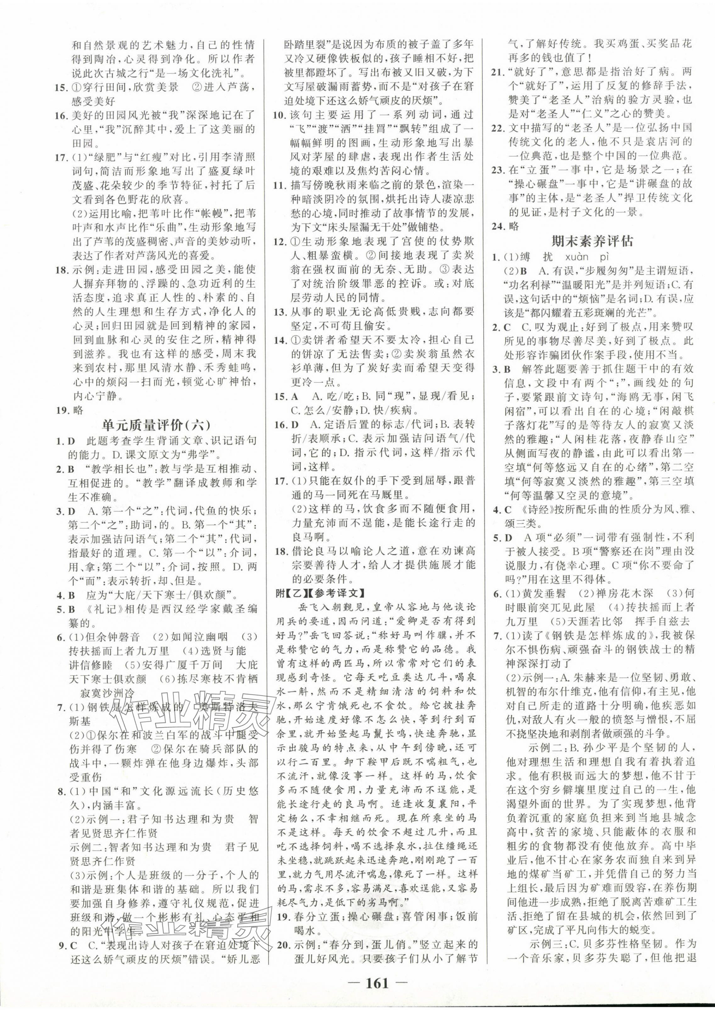注:目前有些书本章节名称可能整理的还不是很完善,但都是按照顺序排列的,请同学们按照顺序仔细查找。练习册 2024年世纪金榜金榜学案八年级语文下册 答案主要是用来给同学们做完题方便对答案用的,请勿直接抄袭。