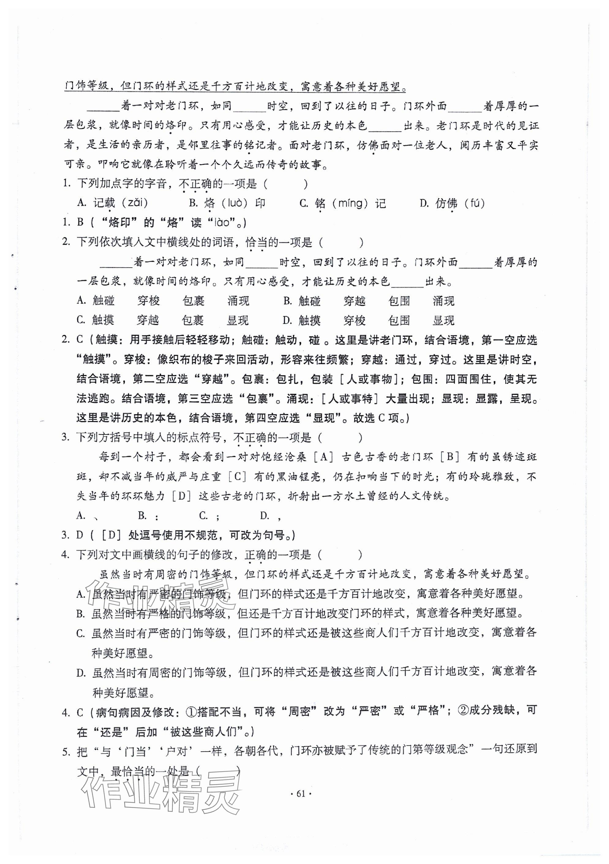 注:目前有些书本章节名称可能整理的还不是很完善,但都是按照顺序排列的,请同学们按照顺序仔细查找。练习册 2024年全息大语文满分专题练八年级上册武汉专版 答案主要是用来给同学们做完题方便对答案用的,请勿直接抄袭。