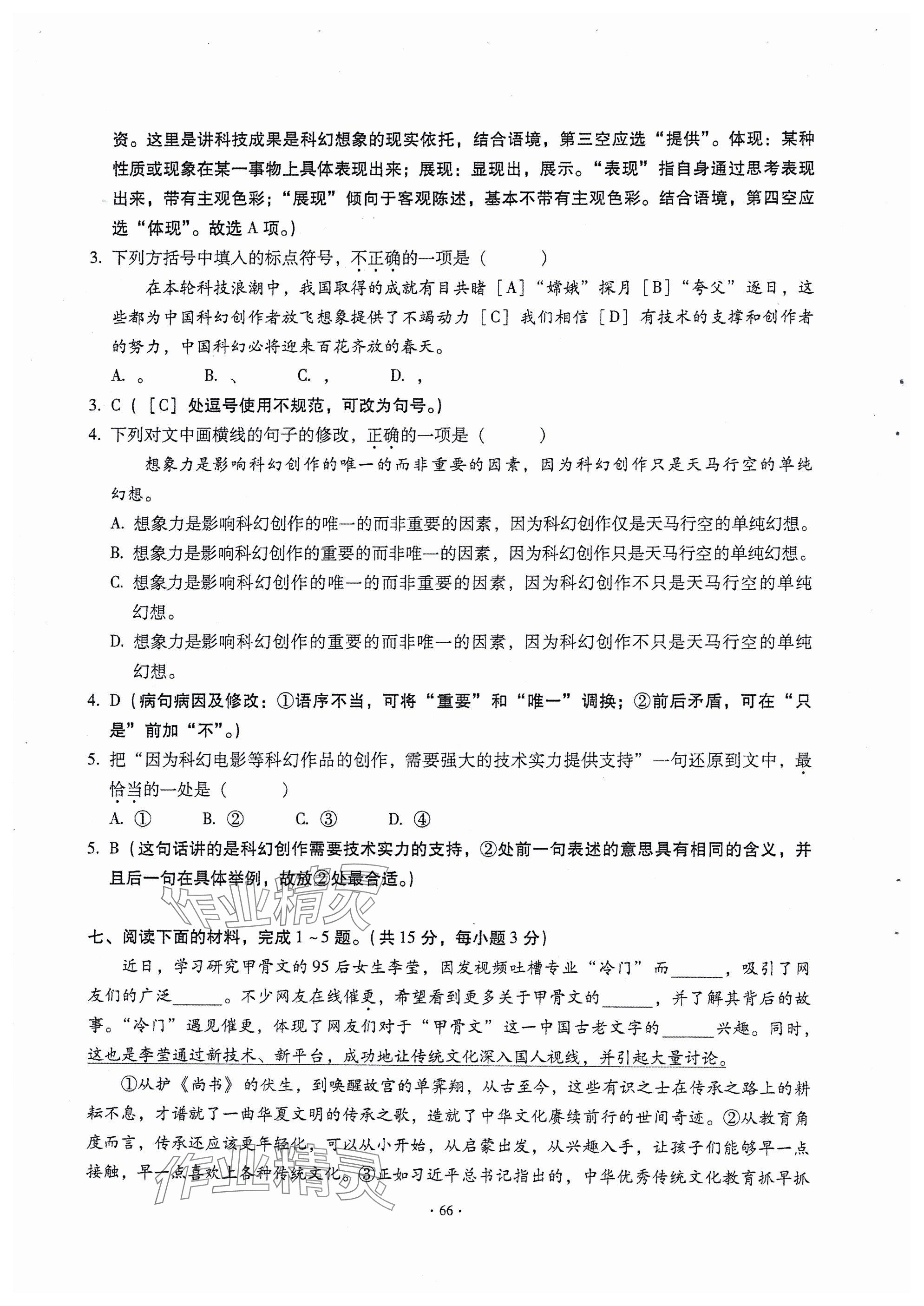 - 参考答案第66页