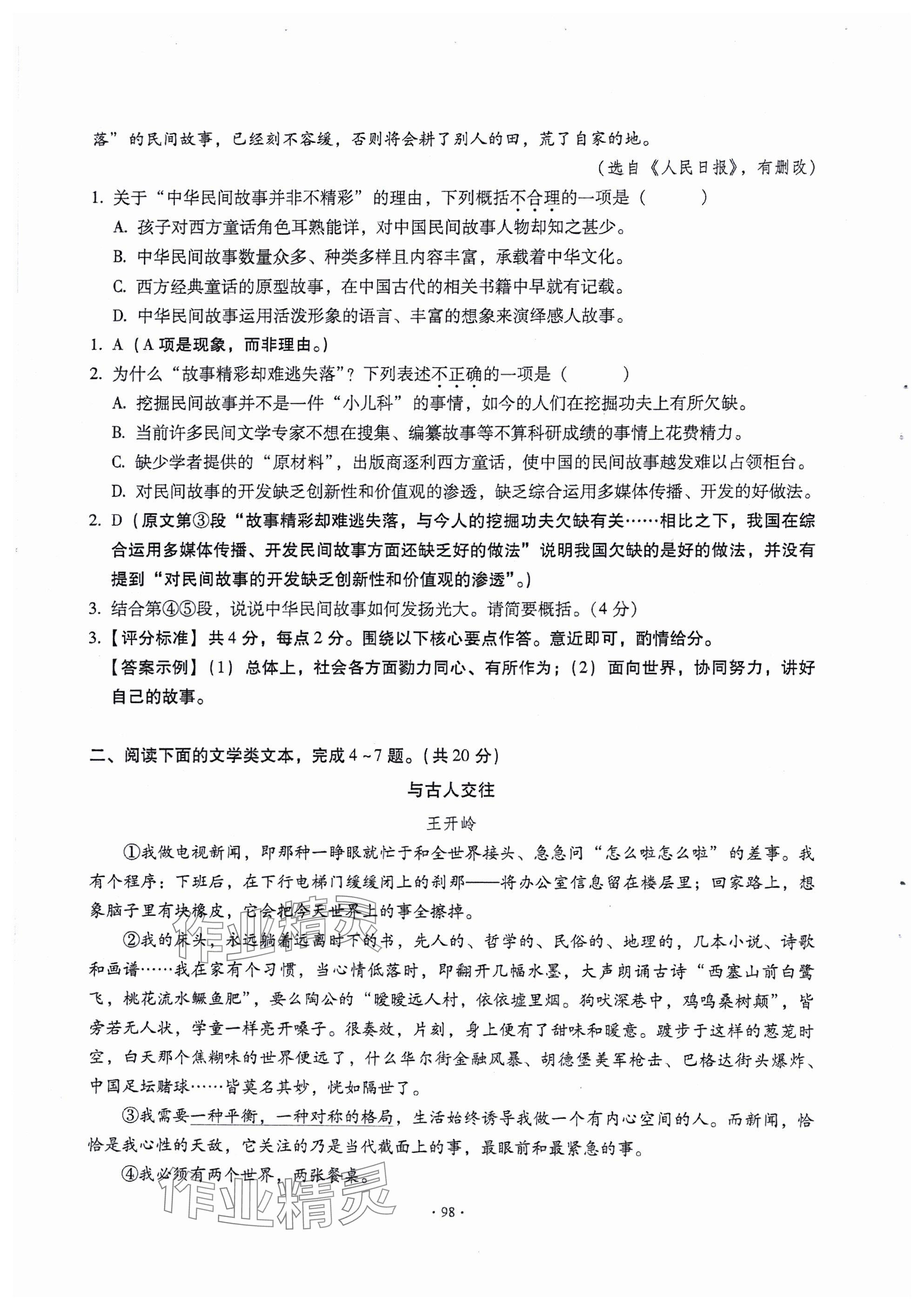 - 参考答案第98页