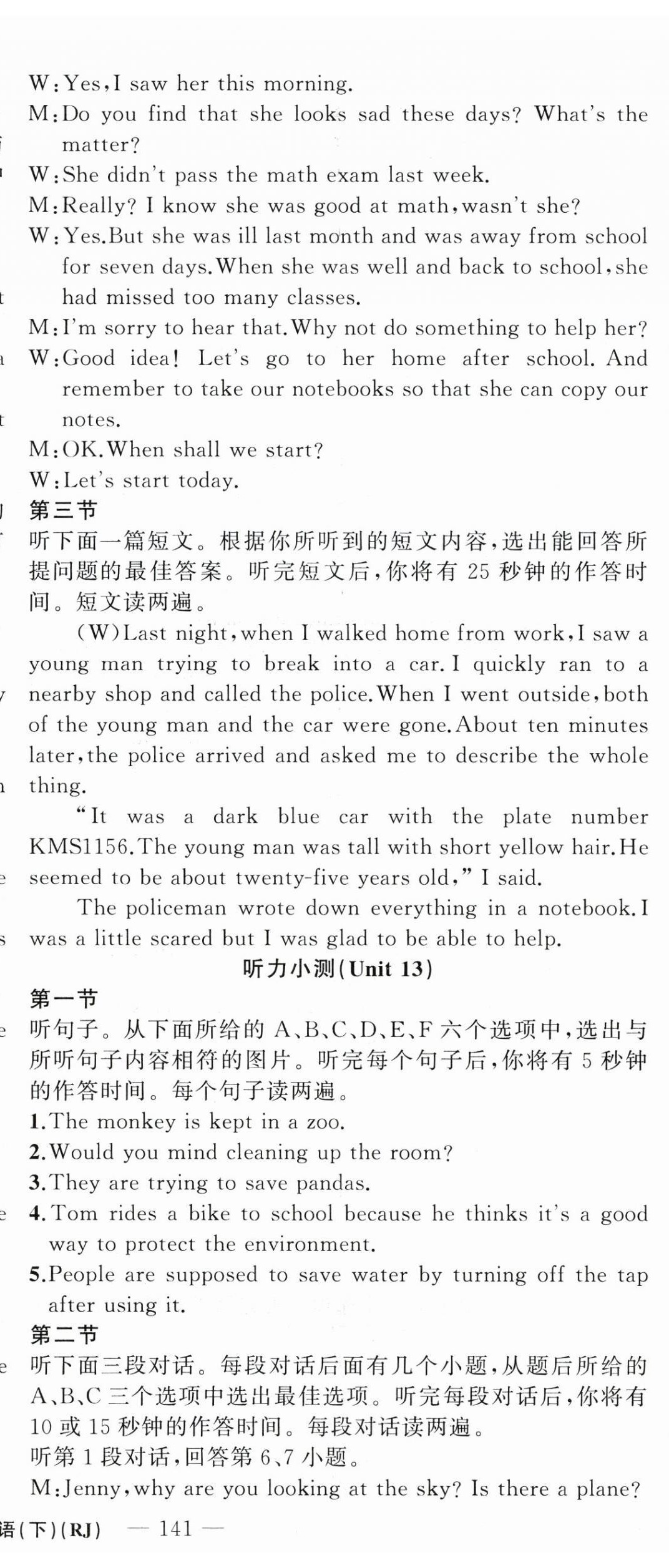 注:目前有些书本章节名称可能整理的还不是很完善,但都是按照顺序排列的,请同学们按照顺序仔细查找。练习册 2024年原创新课堂九年级英语下册人教版红品谷 答案主要是用来给同学们做完题方便对答案用的,请勿直接抄袭。