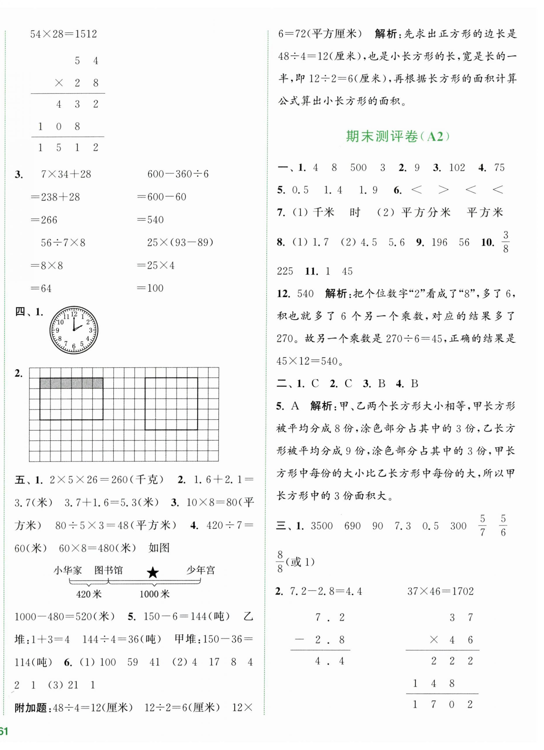 注:目前有些书本章节名称可能整理的还不是很完善,但都是按照顺序排列的,请同学们按照顺序仔细查找。练习册 2024年通城学典全程测评卷三年级数学下册苏教版江苏专版 答案主要是用来给同学们做完题方便对答案用的,请勿直接抄袭。