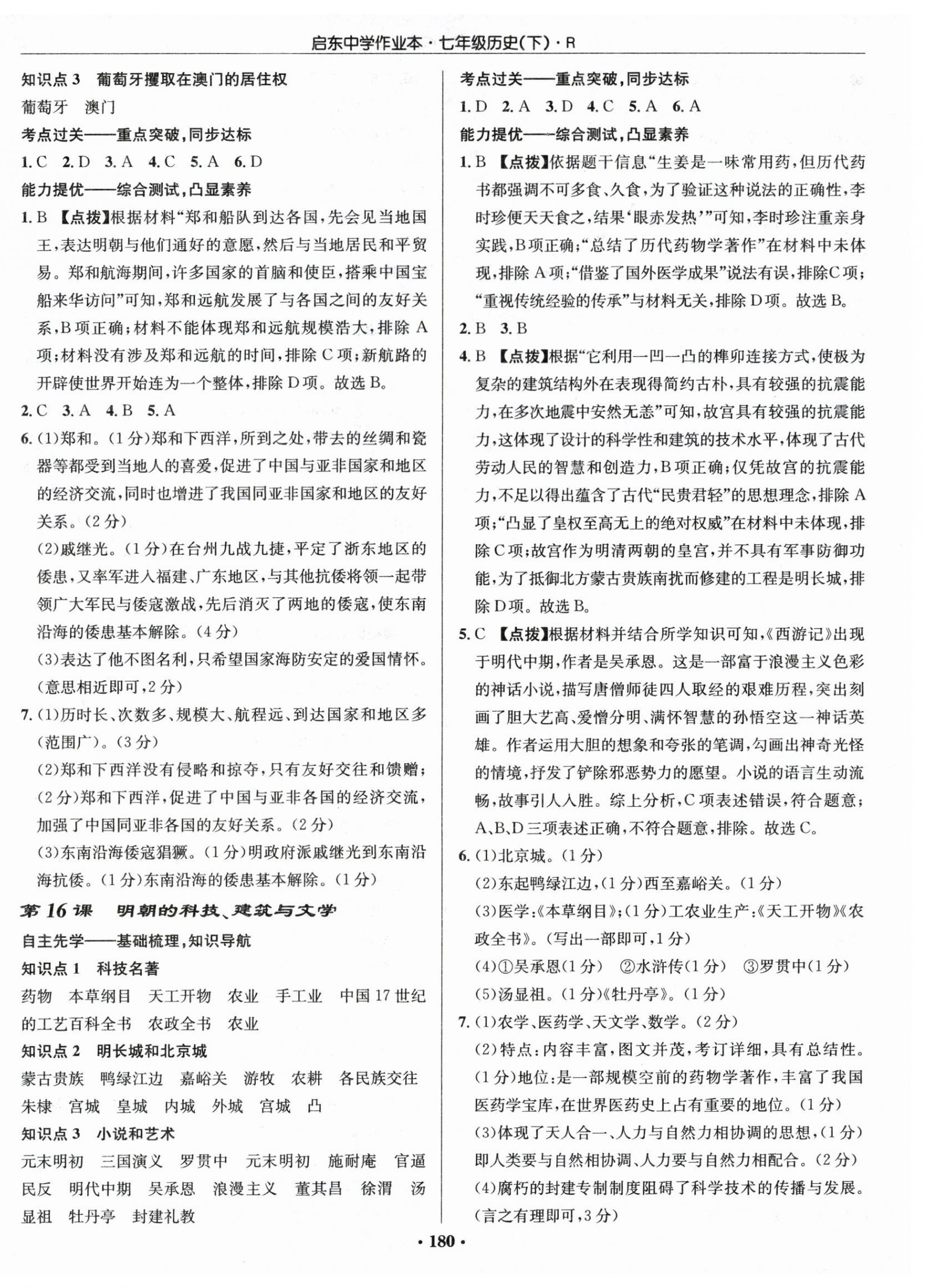 注:目前有些书本章节名称可能整理的还不是很完善,但都是按照顺序排列的,请同学们按照顺序仔细查找。练习册 2024年启东中学作业本七年级历史下册人教版 答案主要是用来给同学们做完题方便对答案用的,请勿直接抄袭。