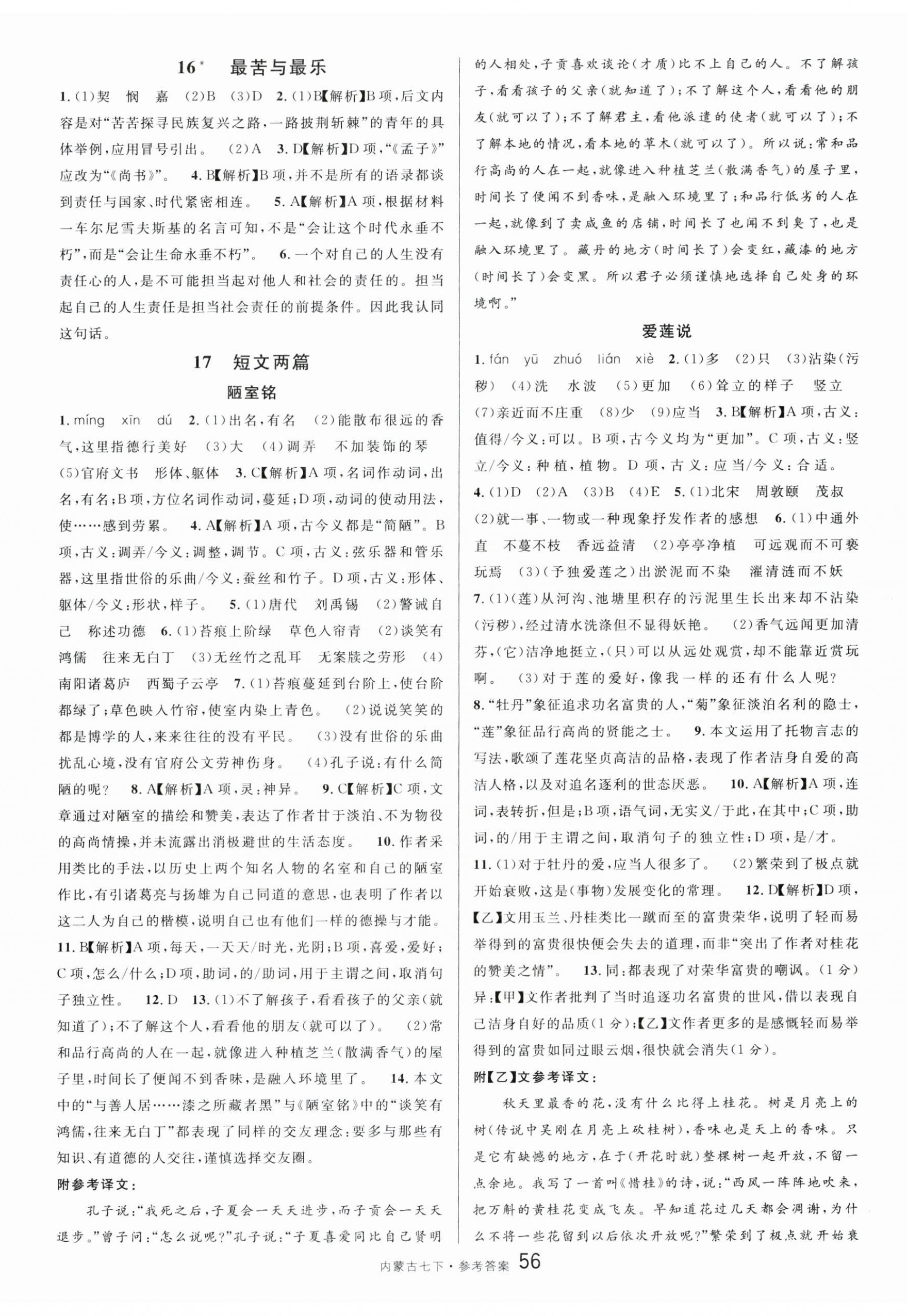 注:目前有些书本章节名称可能整理的还不是很完善,但都是按照顺序排列的,请同学们按照顺序仔细查找。练习册 2024年名校课堂七年级语文下册人教版内蒙古专版 答案主要是用来给同学们做完题方便对答案用的,请勿直接抄袭。