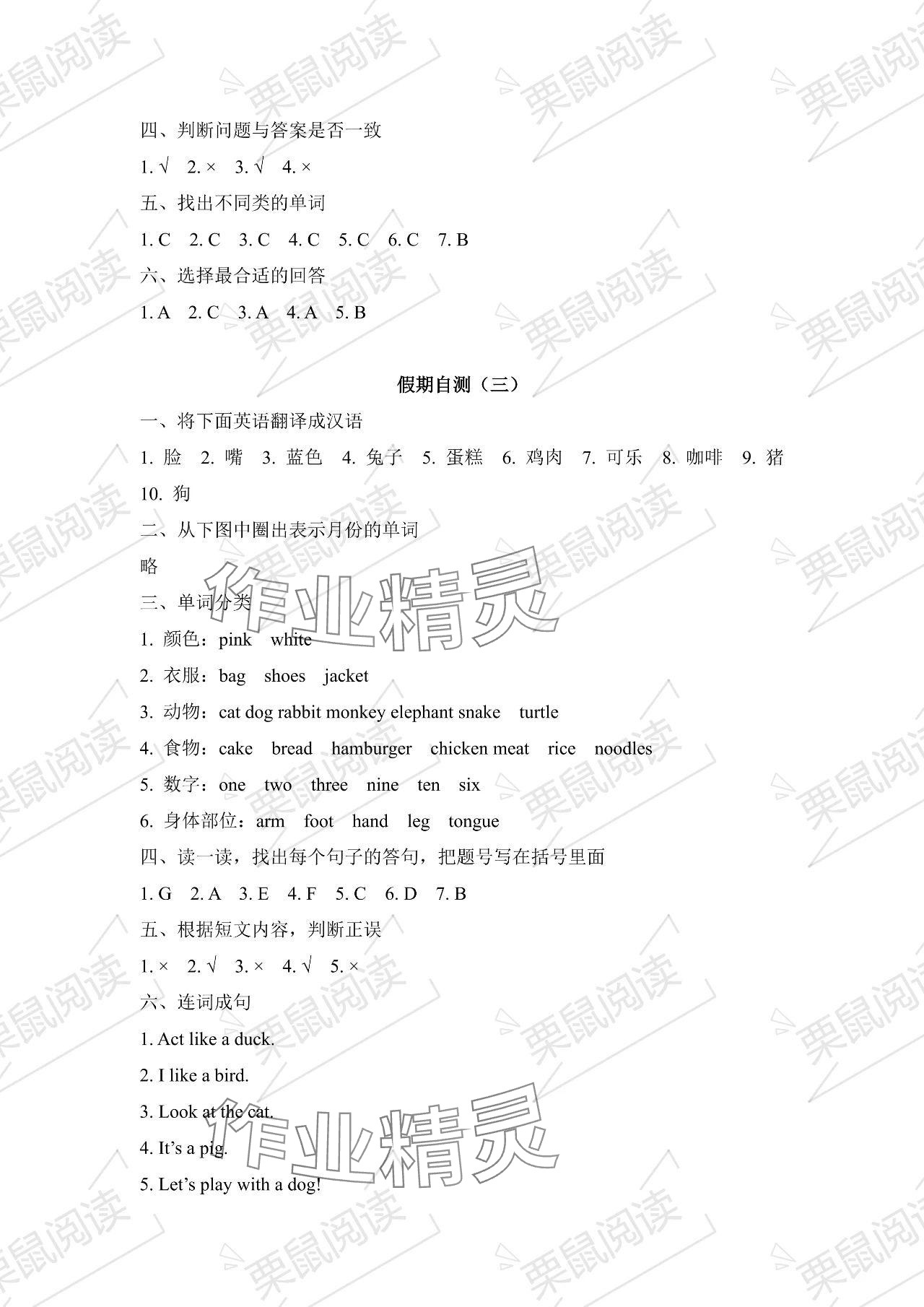 注:目前有些书本章节名称可能整理的还不是很完善,但都是按照顺序排列的,请同学们按照顺序仔细查找。练习册 2024年阳光假日寒假三年级英语人教新起点 答案主要是用来给同学们做完题方便对答案用的,请勿直接抄袭。