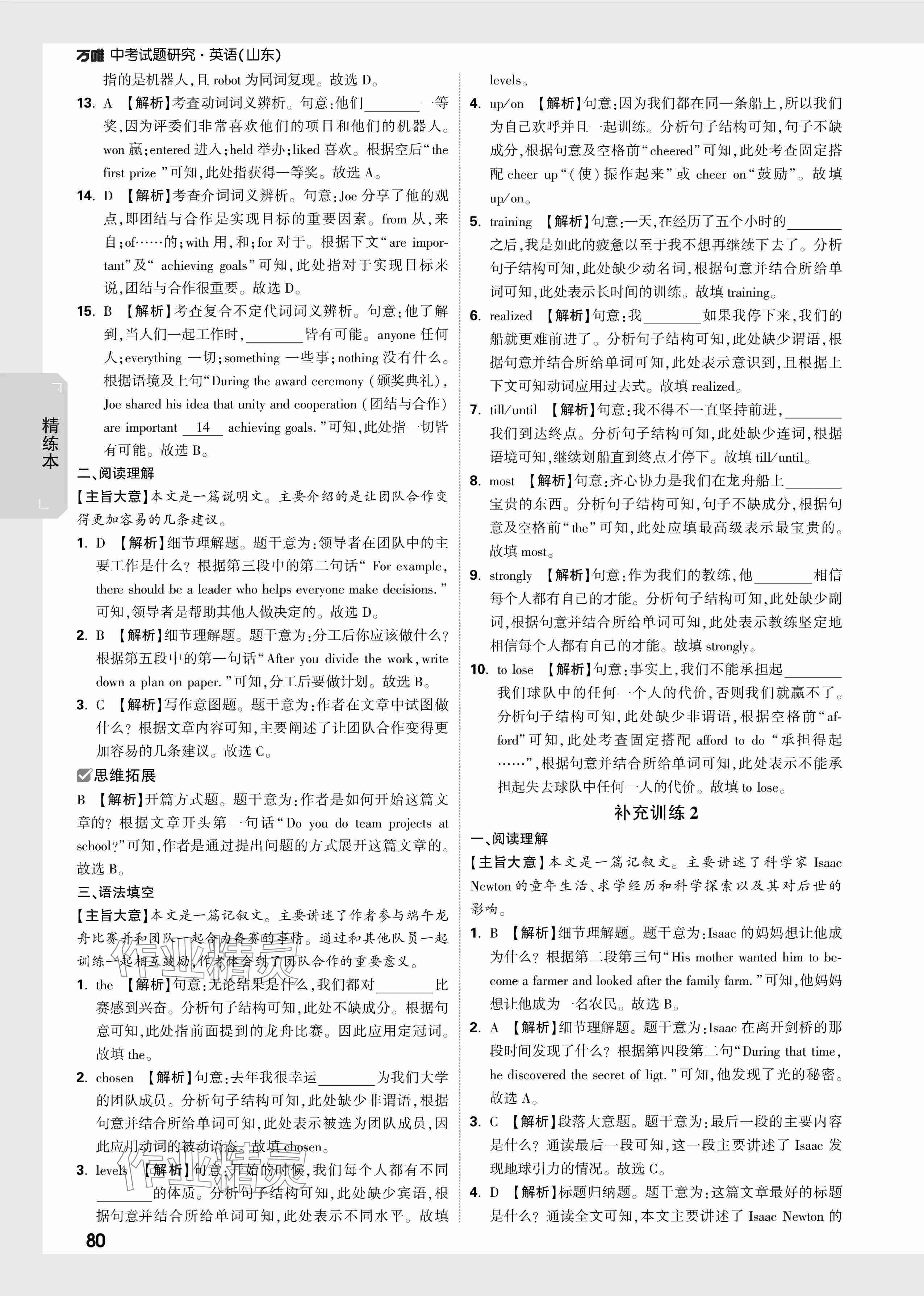 注:目前有些书本章节名称可能整理的还不是很完善,但都是按照顺序排列的,请同学们按照顺序仔细查找。练习册 2024年万唯中考试题研究英语山东专版 答案主要是用来给同学们做完题方便对答案用的,请勿直接抄袭。