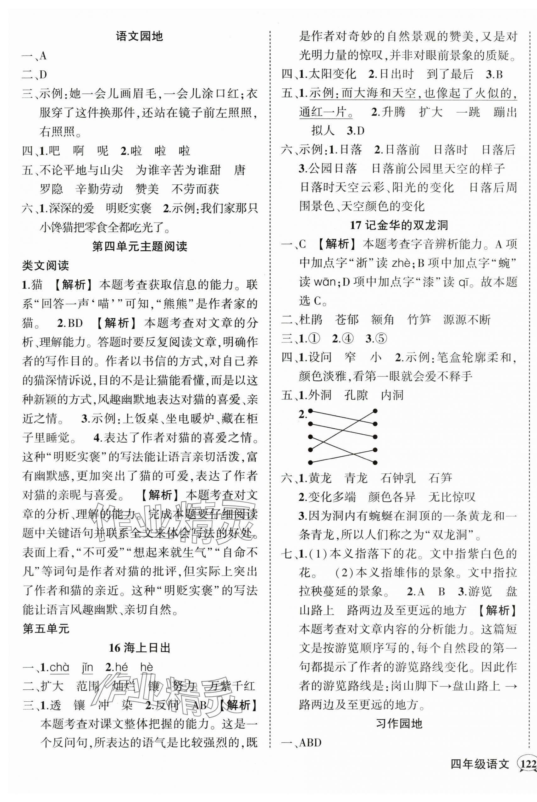 注:目前有些书本章节名称可能整理的还不是很完善,但都是按照顺序排列的,请同学们按照顺序仔细查找。练习册 2024年状元成才路创优作业100分四年级语文下册人教版湖北专版 答案主要是用来给同学们做完题方便对答案用的,请勿直接抄袭。