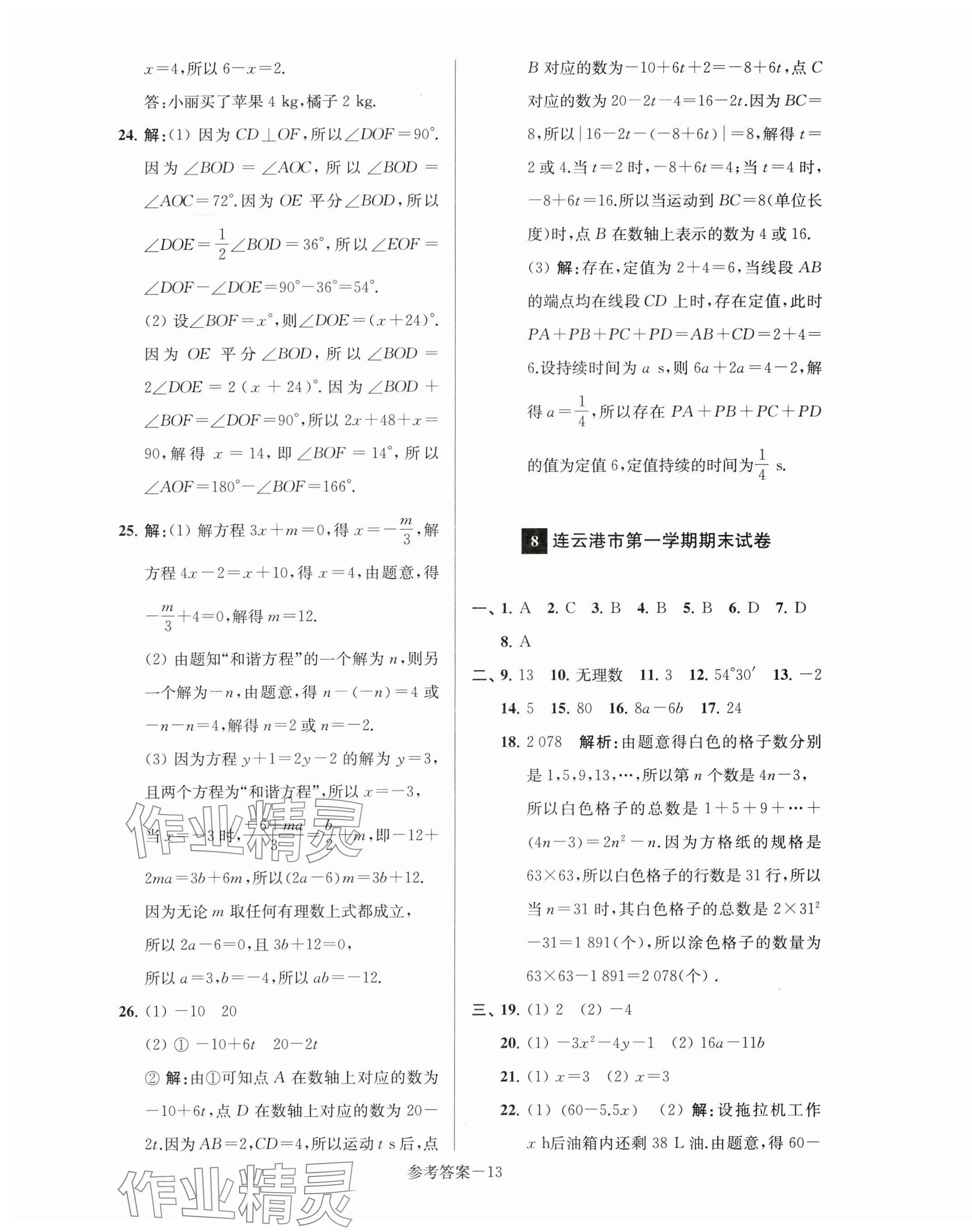 注:目前有些书本章节名称可能整理的还不是很完善,但都是按照顺序排列的,请同学们按照顺序仔细查找。练习册 2023年超能学典名牌中学期末突破一卷通七年级数学上册苏科版 答案主要是用来给同学们做完题方便对答案用的,请勿直接抄袭。