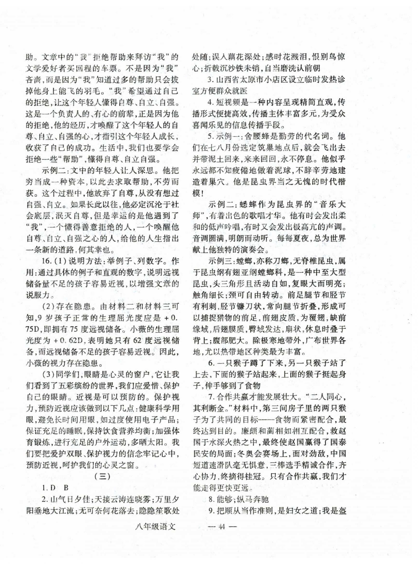 注:目前有些书本章节名称可能整理的还不是很完善,但都是按照顺序排列的,请同学们按照顺序仔细查找。练习册 2024年全新版期末经典卷八年级语文上册人教版 答案主要是用来给同学们做完题方便对答案用的,请勿直接抄袭。