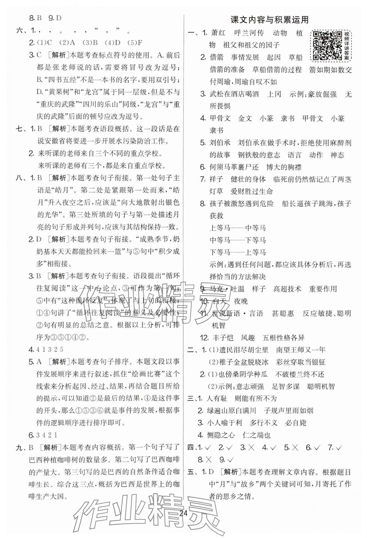 注:目前有些书本章节名称可能整理的还不是很完善,但都是按照顺序排列的,请同学们按照顺序仔细查找。练习册 2024年实验班提优大考卷五年级语文下册人教版 答案主要是用来给同学们做完题方便对答案用的,请勿直接抄袭。