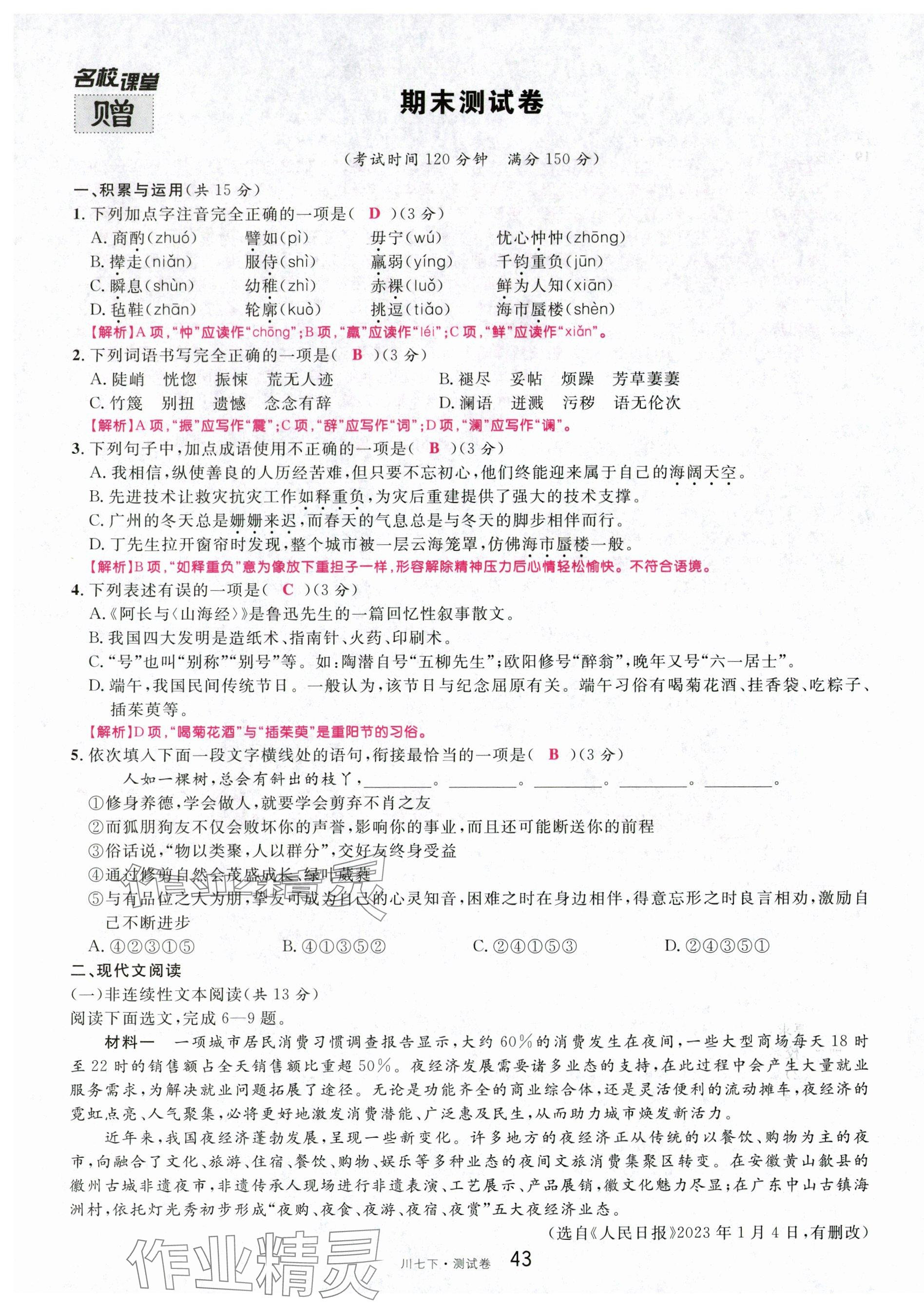 - 参考答案第43页