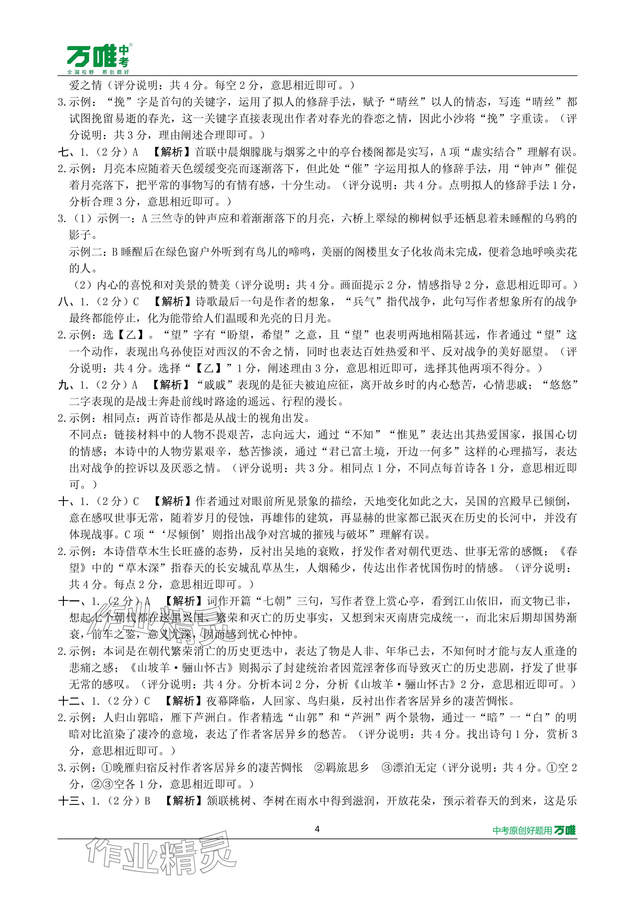 2024年万唯中考试题研究语文长沙专版