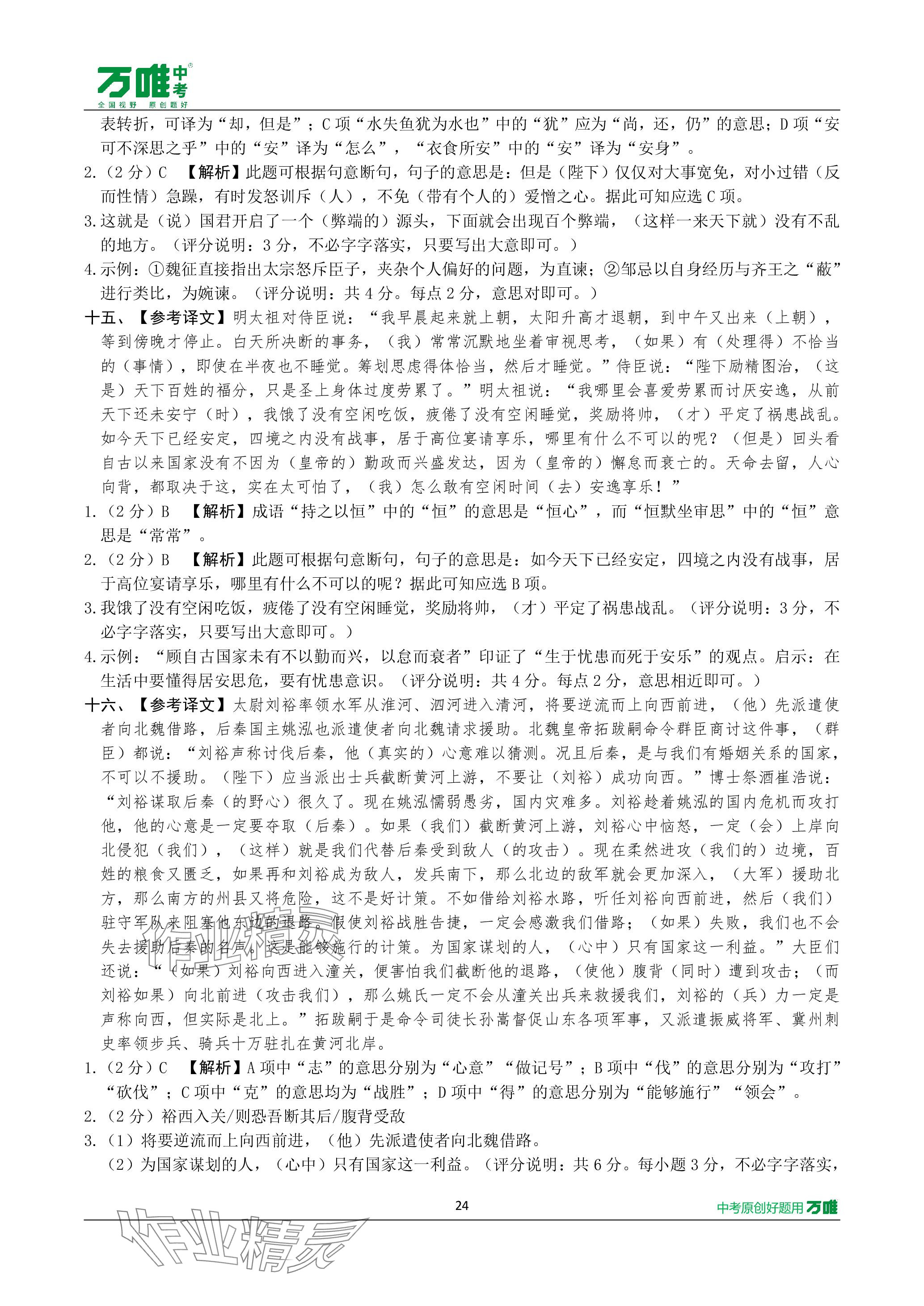 注:目前有些书本章节名称可能整理的还不是很完善,但都是按照顺序排列的,请同学们按照顺序仔细查找。练习册 2024年万唯中考试题研究语文长沙专版 答案主要是用来给同学们做完题方便对答案用的,请勿直接抄袭。