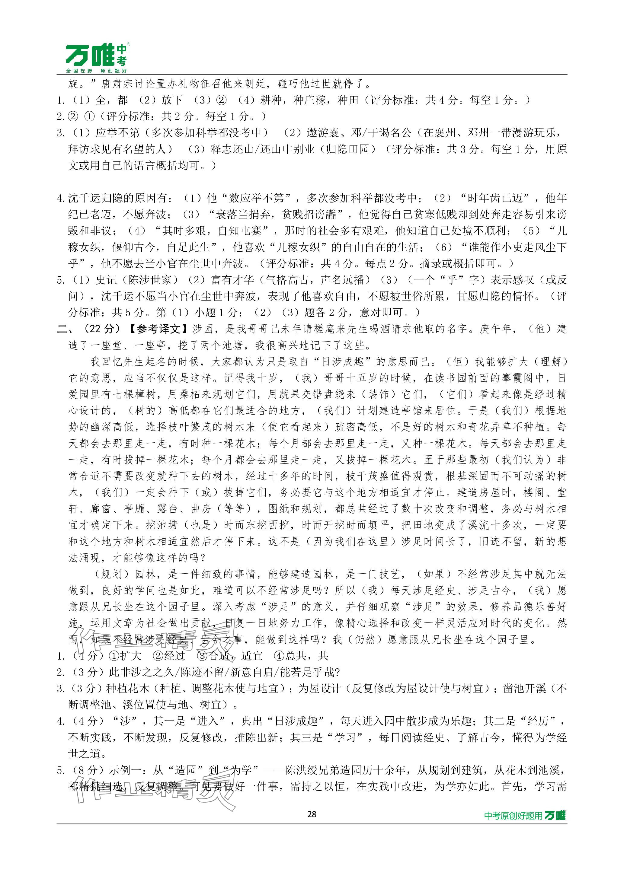 注:目前有些书本章节名称可能整理的还不是很完善,但都是按照顺序排列的,请同学们按照顺序仔细查找。练习册 2024年万唯中考试题研究语文长沙专版 答案主要是用来给同学们做完题方便对答案用的,请勿直接抄袭。