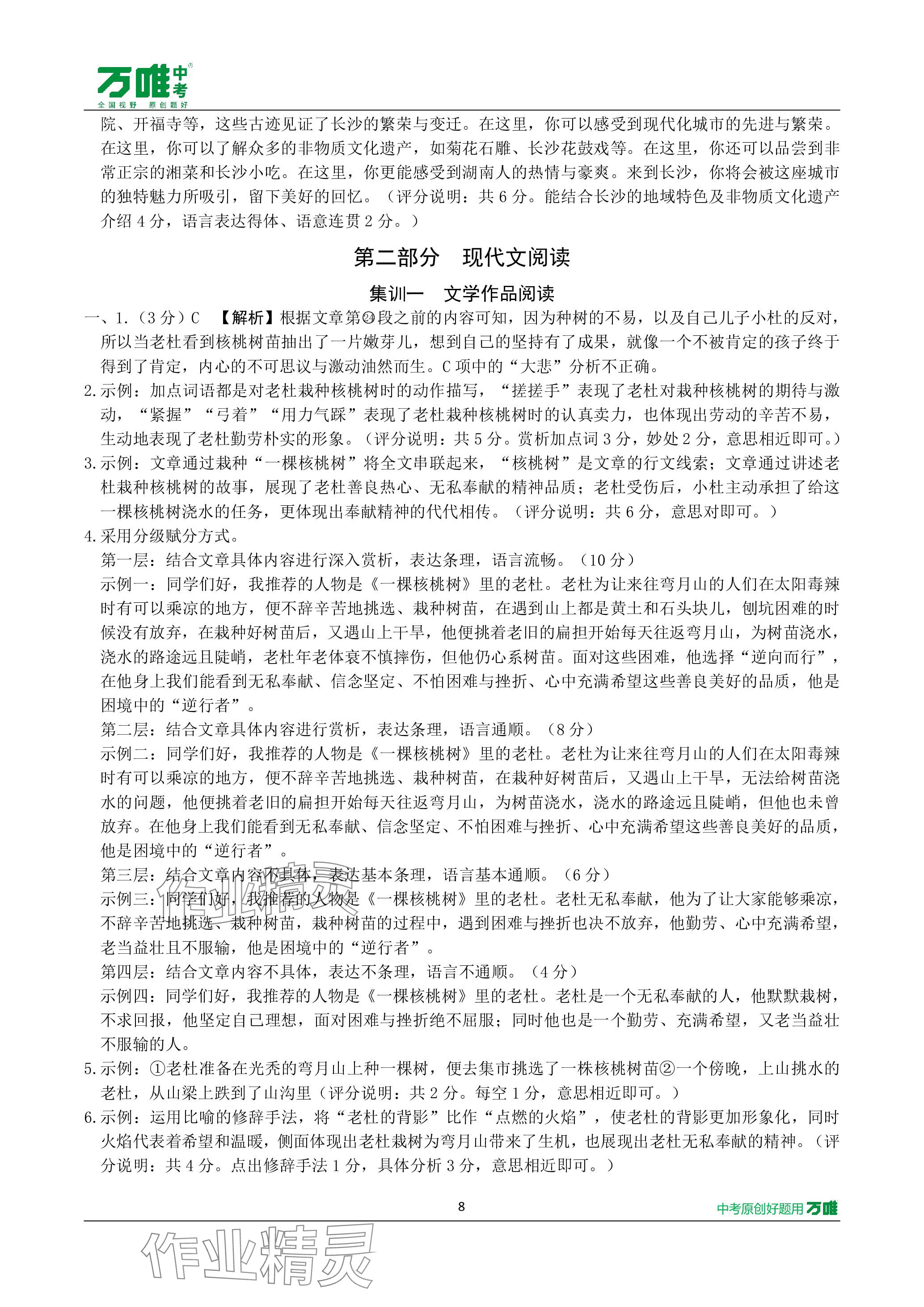 注:目前有些书本章节名称可能整理的还不是很完善,但都是按照顺序排列的,请同学们按照顺序仔细查找。练习册 2024年万唯中考试题研究语文长沙专版 答案主要是用来给同学们做完题方便对答案用的,请勿直接抄袭。