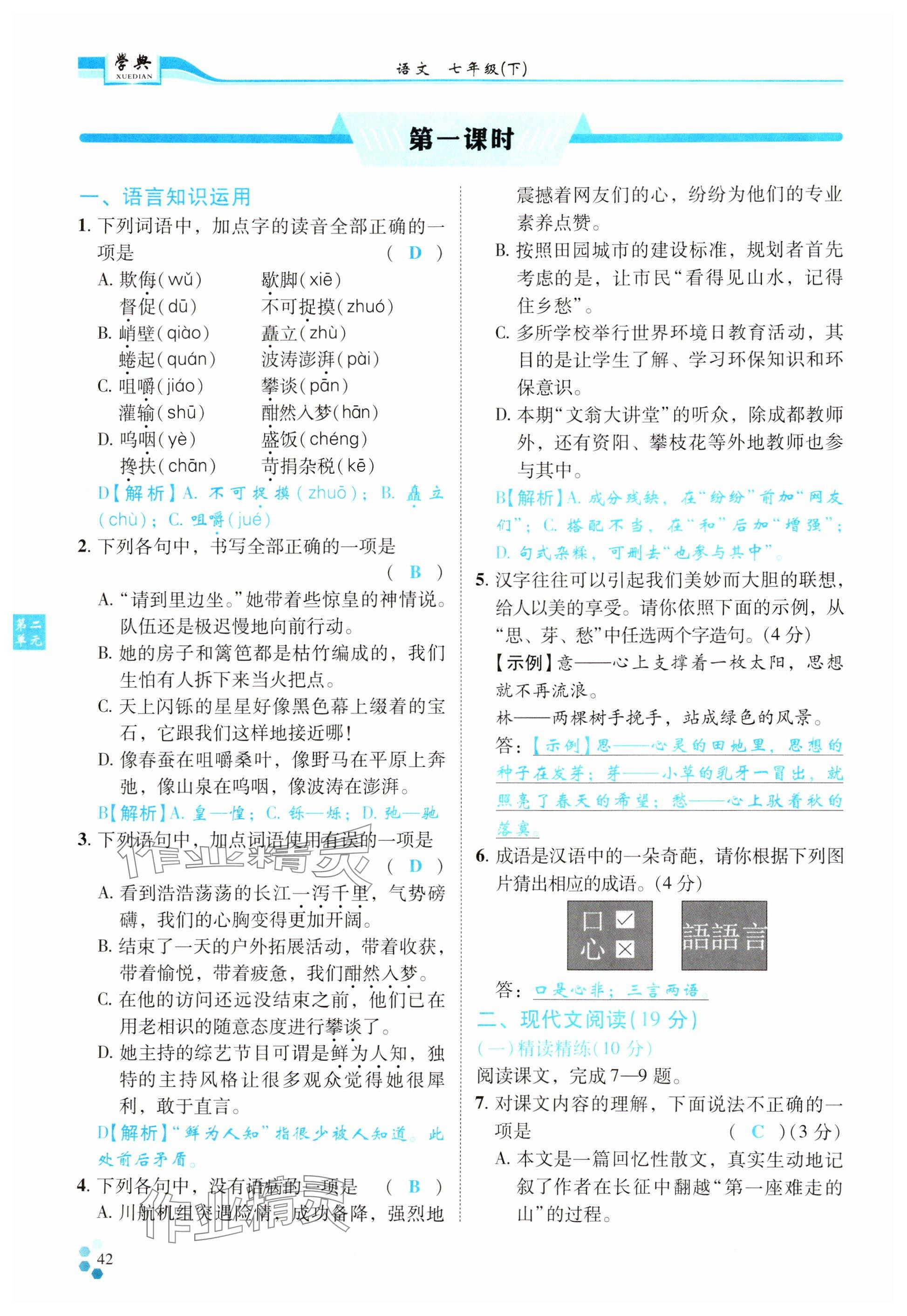 注:目前有些书本章节名称可能整理的还不是很完善,但都是按照顺序排列的,请同学们按照顺序仔细查找。练习册 2024年学典四川七年级语文下册人教版 答案主要是用来给同学们做完题方便对答案用的,请勿直接抄袭。