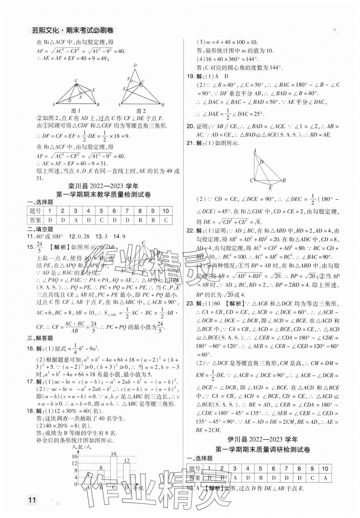 注:目前有些书本章节名称可能整理的还不是很完善,但都是按照顺序排列的,请同学们按照顺序仔细查找。练习册 2023年期末考试必刷卷八年级数学上册华师大版九县七区 答案主要是用来给同学们做完题方便对答案用的,请勿直接抄袭。