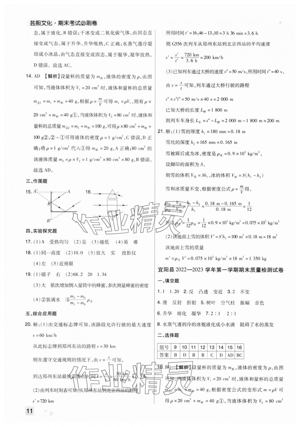 注:目前有些书本章节名称可能整理的还不是很完善,但都是按照顺序排列的,请同学们按照顺序仔细查找。练习册 2023年期末考试必刷卷八年级物理上册人教版九县七区 答案主要是用来给同学们做完题方便对答案用的,请勿直接抄袭。