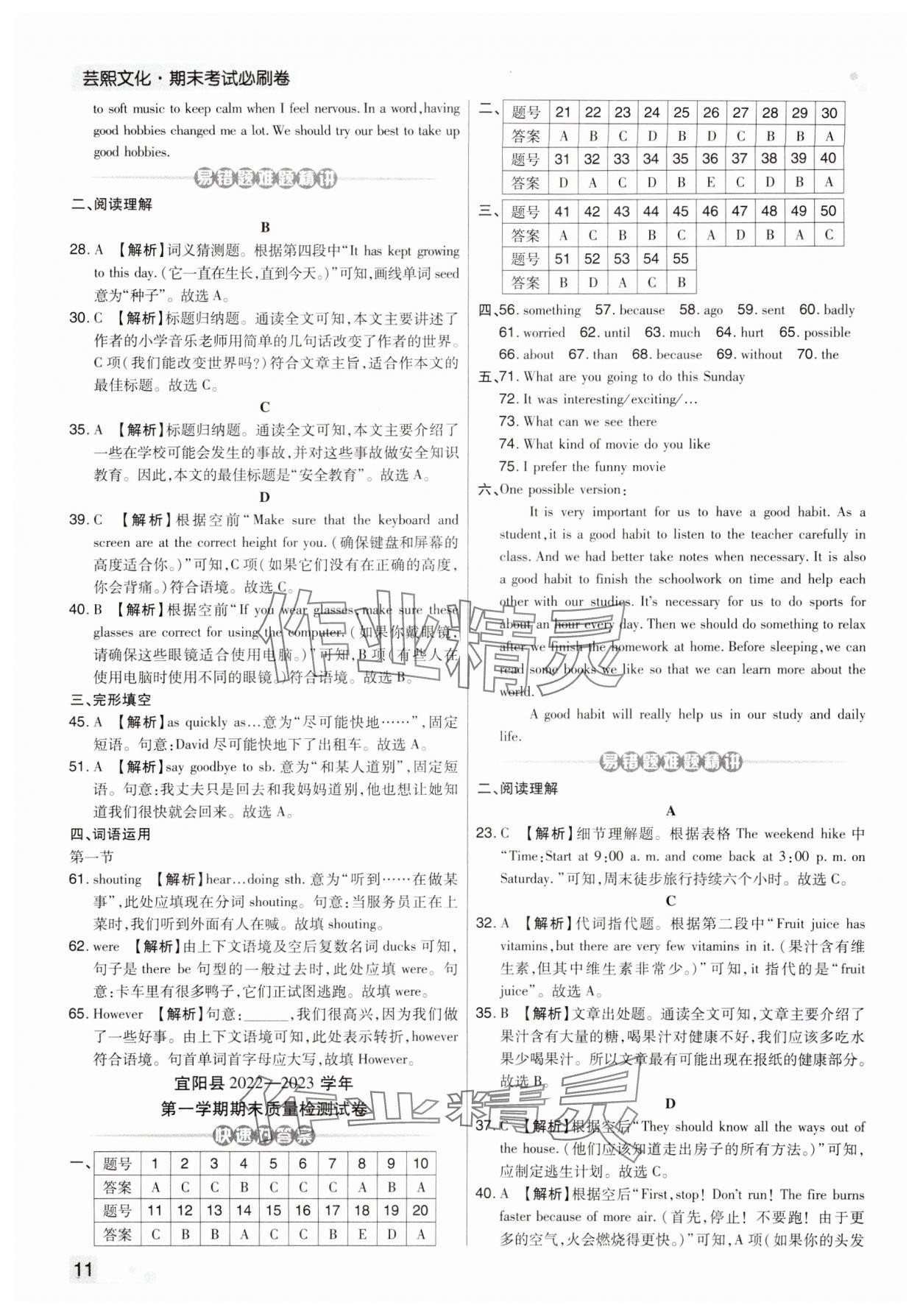 注:目前有些书本章节名称可能整理的还不是很完善,但都是按照顺序排列的,请同学们按照顺序仔细查找。练习册 2023年期末考试必刷卷八年级英语上册仁爱版九县七区 答案主要是用来给同学们做完题方便对答案用的,请勿直接抄袭。
