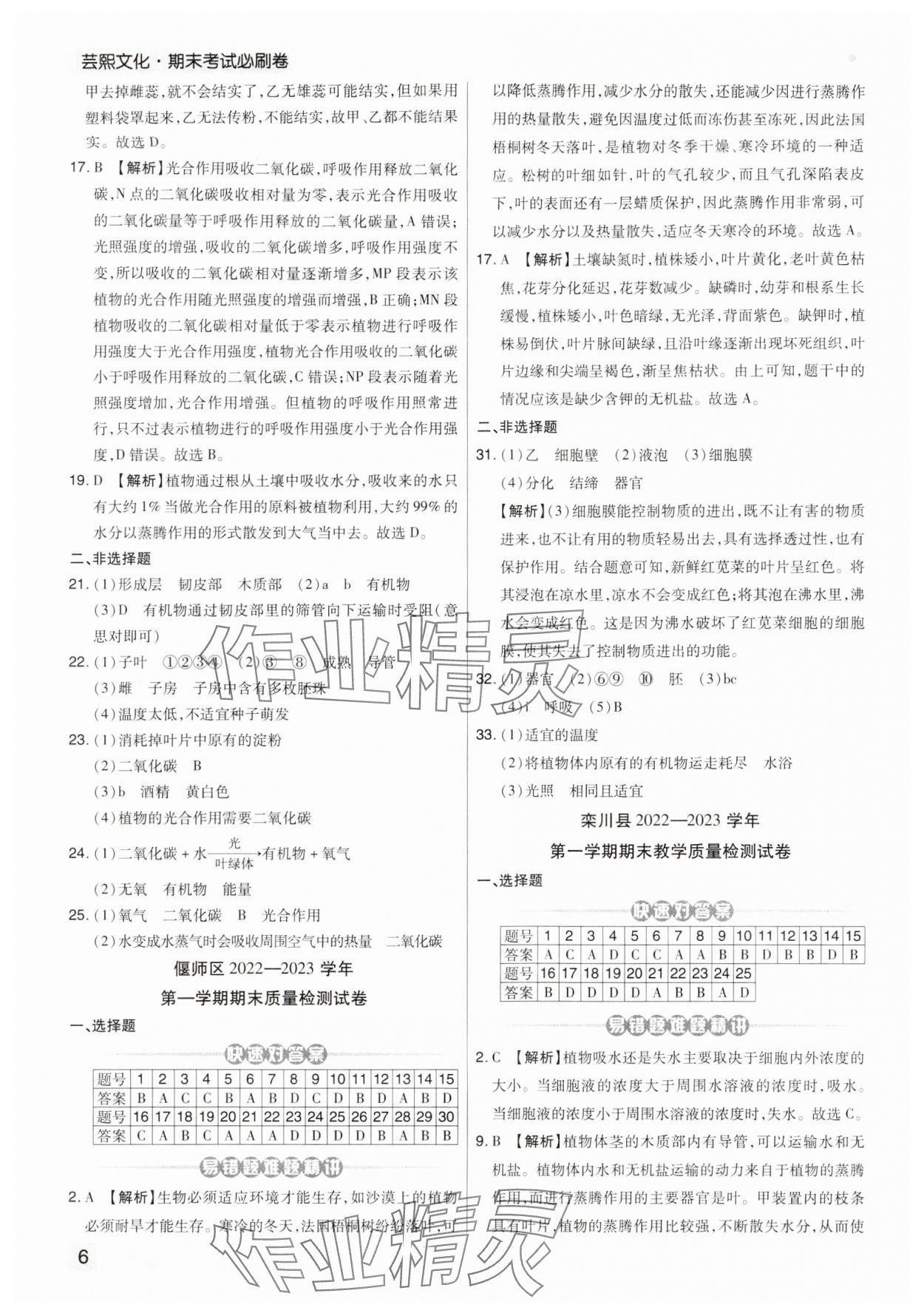 注:目前有些书本章节名称可能整理的还不是很完善,但都是按照顺序排列的,请同学们按照顺序仔细查找。练习册 2024年期末考试必刷卷七年级生物上册苏教版九县七区 答案主要是用来给同学们做完题方便对答案用的,请勿直接抄袭。