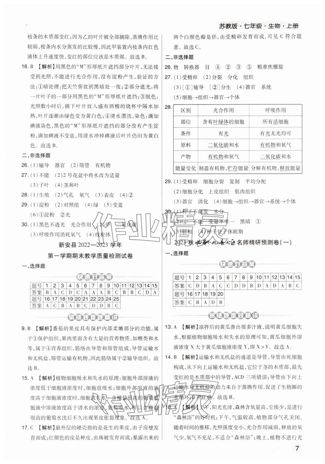 注:目前有些书本章节名称可能整理的还不是很完善,但都是按照顺序排列的,请同学们按照顺序仔细查找。练习册 2024年期末考试必刷卷七年级生物上册苏教版九县七区 答案主要是用来给同学们做完题方便对答案用的,请勿直接抄袭。