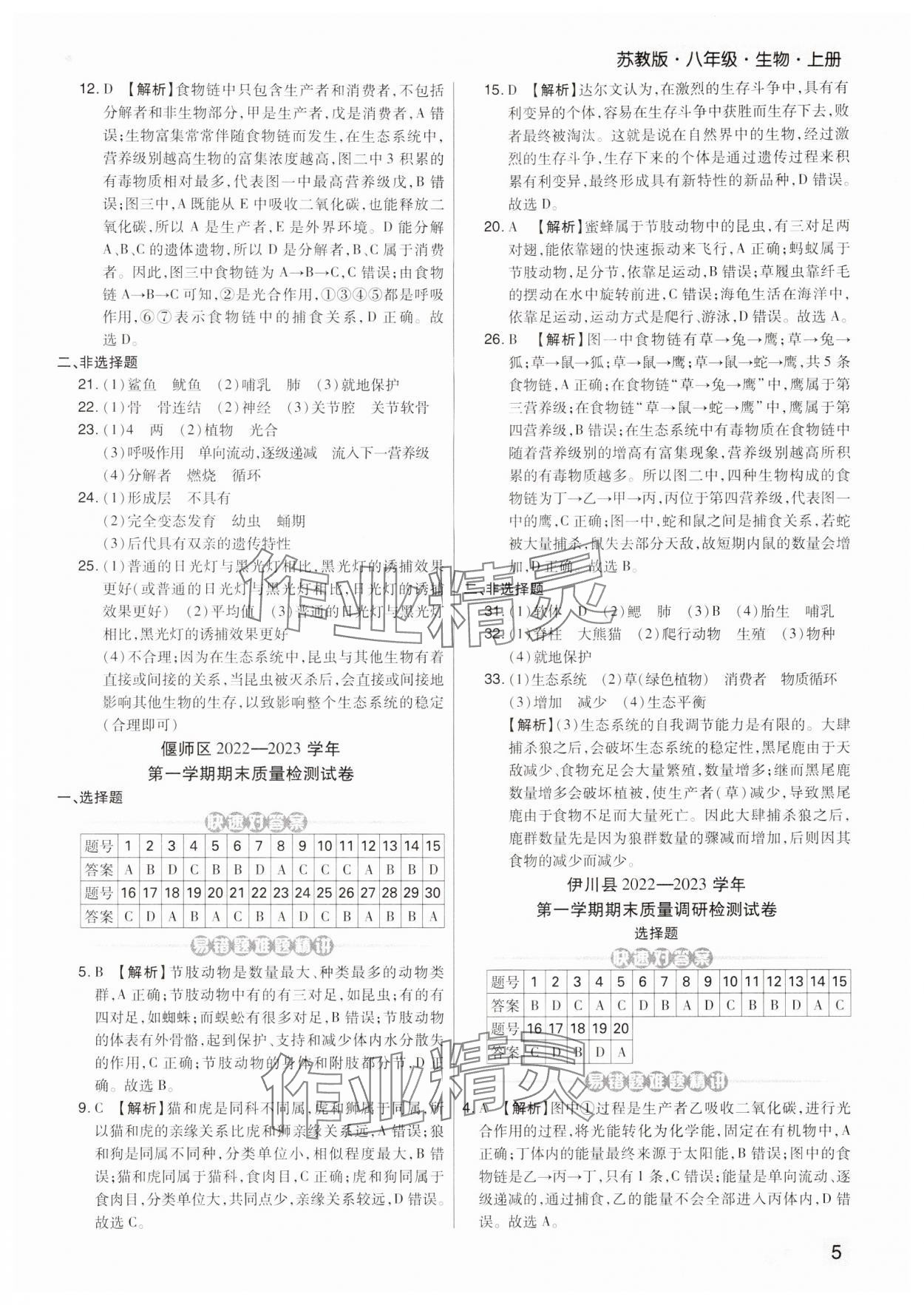 注:目前有些书本章节名称可能整理的还不是很完善,但都是按照顺序排列的,请同学们按照顺序仔细查找。练习册 2024年期末考试必刷卷八年级生物上册苏教版九县七区 答案主要是用来给同学们做完题方便对答案用的,请勿直接抄袭。
