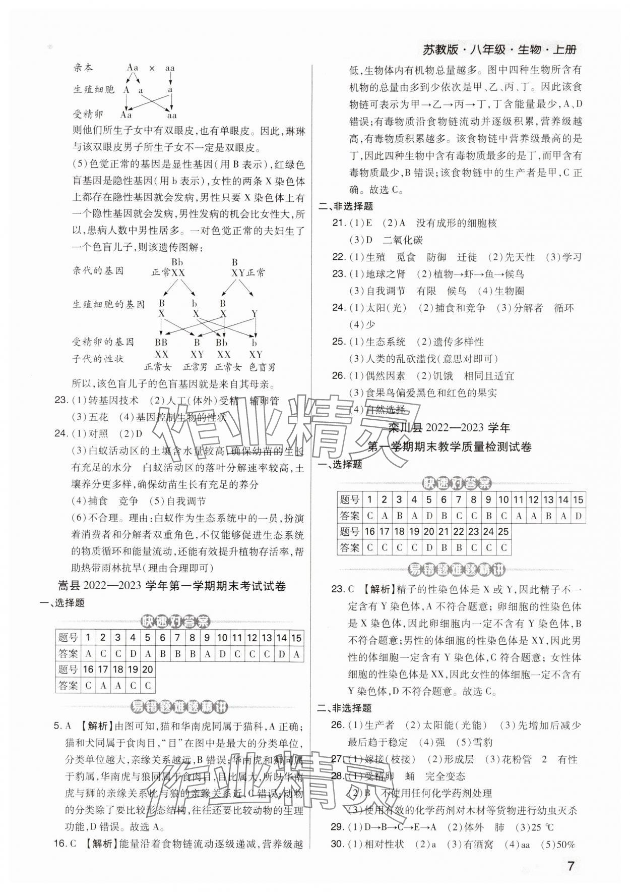2024年期末考试必刷卷八年级生物上册苏教版九县七区