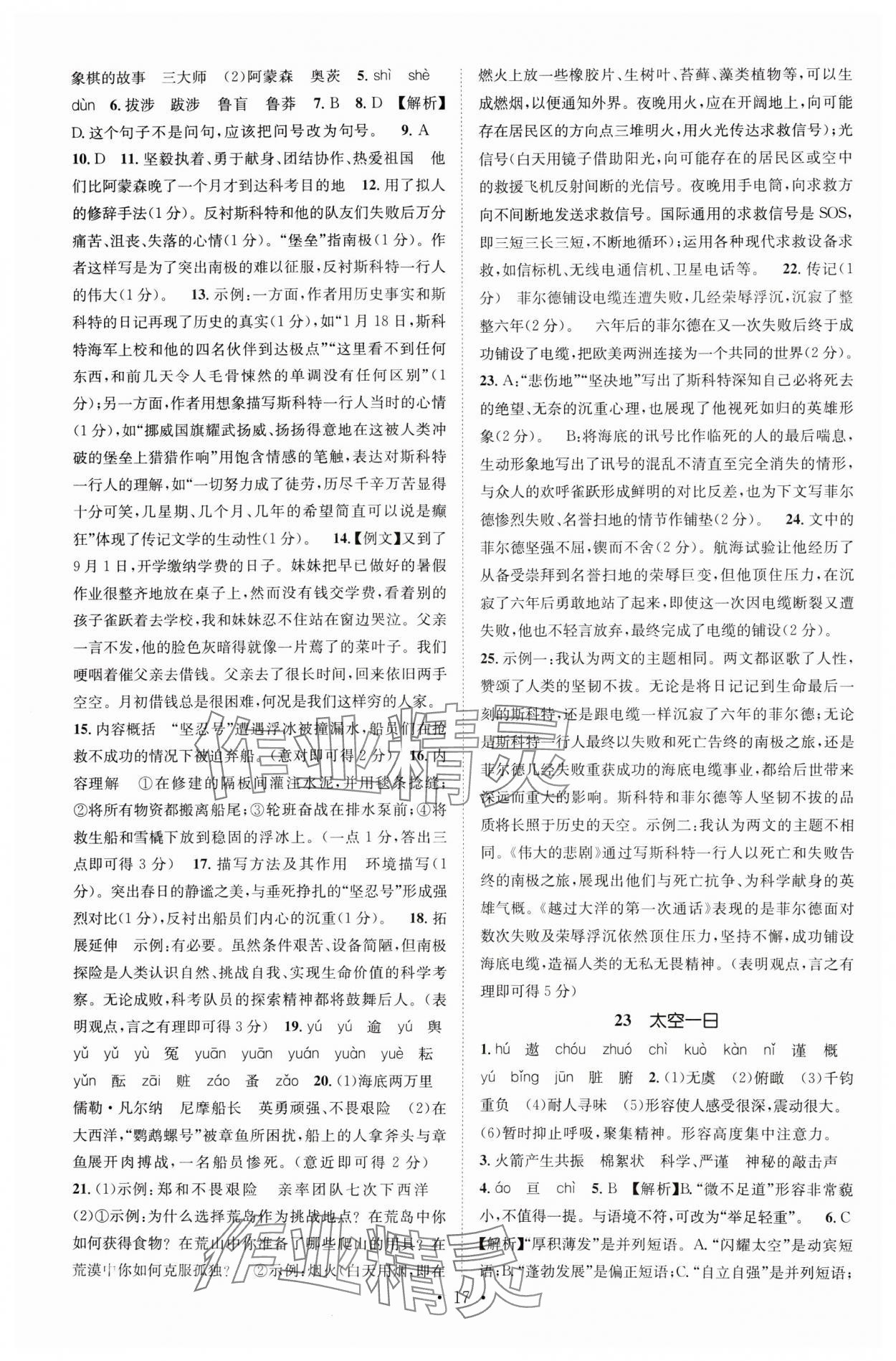 注:目前有些书本章节名称可能整理的还不是很完善,但都是按照顺序排列的,请同学们按照顺序仔细查找。练习册 2024年精英新课堂七年级语文下册人教版重庆专版 答案主要是用来给同学们做完题方便对答案用的,请勿直接抄袭。