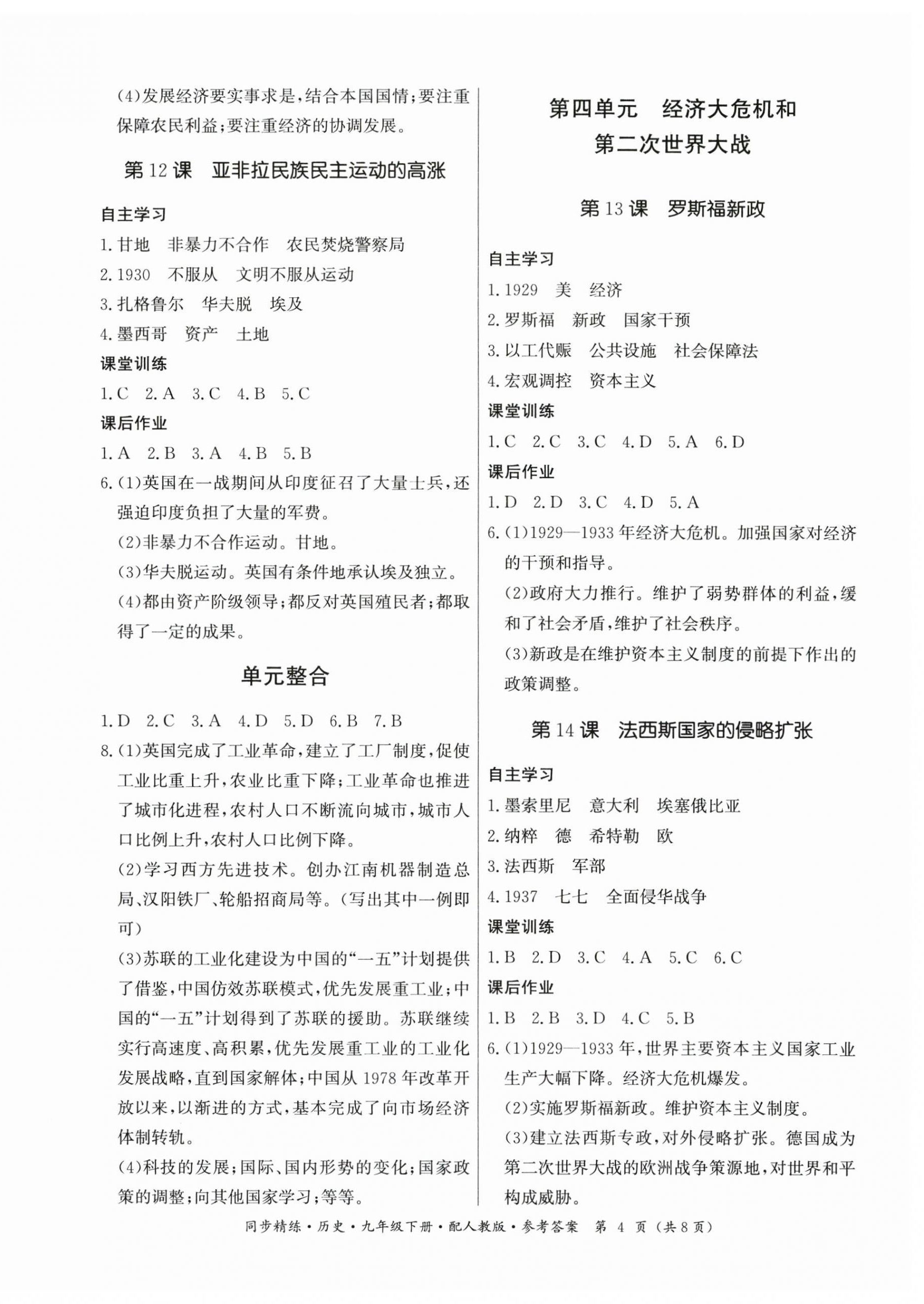 注:目前有些书本章节名称可能整理的还不是很完善,但都是按照顺序排列的,请同学们按照顺序仔细查找。练习册 2024年同步精练九年级历史下册人教版广东人民出版社 答案主要是用来给同学们做完题方便对答案用的,请勿直接抄袭。