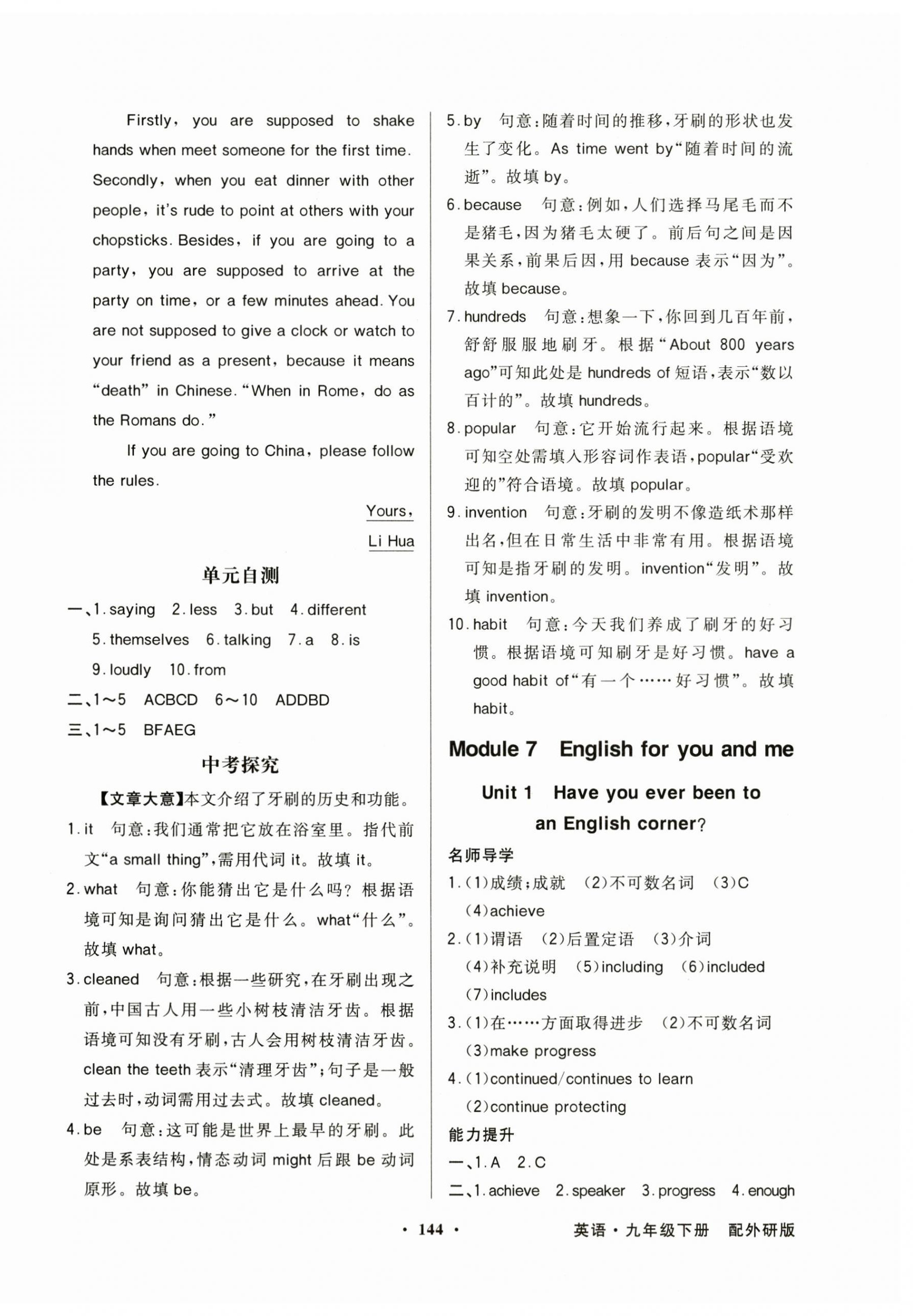 注:目前有些书本章节名称可能整理的还不是很完善,但都是按照顺序排列的,请同学们按照顺序仔细查找。练习册 2024年同步导学与优化训练九年级英语下册外研版 答案主要是用来给同学们做完题方便对答案用的,请勿直接抄袭。