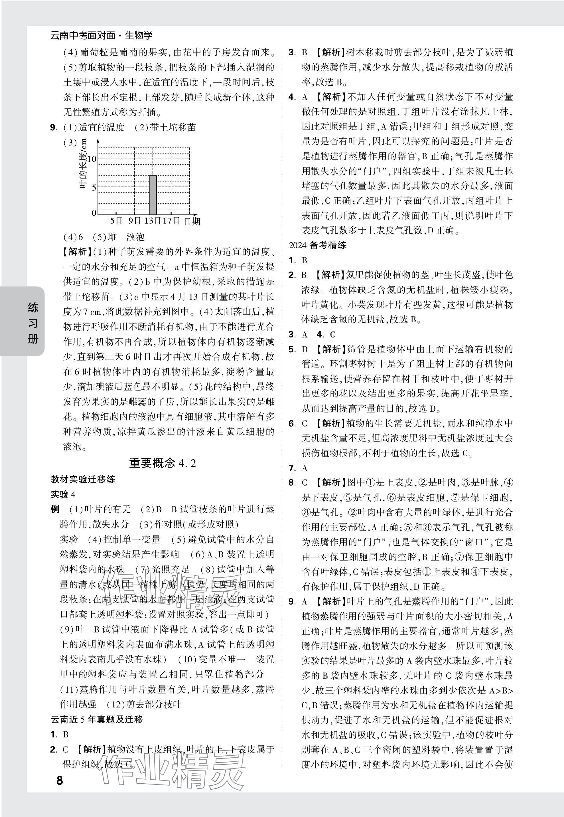 注:目前有些书本章节名称可能整理的还不是很完善,但都是按照顺序排列的,请同学们按照顺序仔细查找。练习册 2024年中考面对面生物中考云南专版 答案主要是用来给同学们做完题方便对答案用的,请勿直接抄袭。