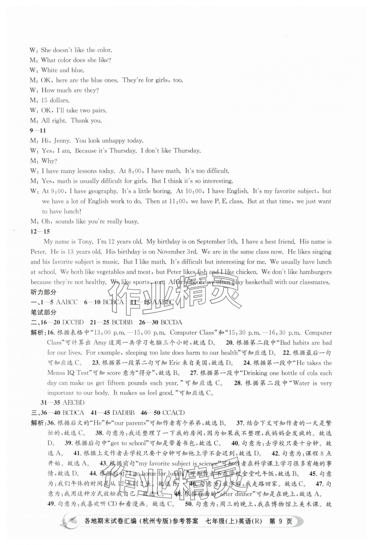 2023年孟建平各地期末试卷汇编七年级英语上册人教版杭州专版