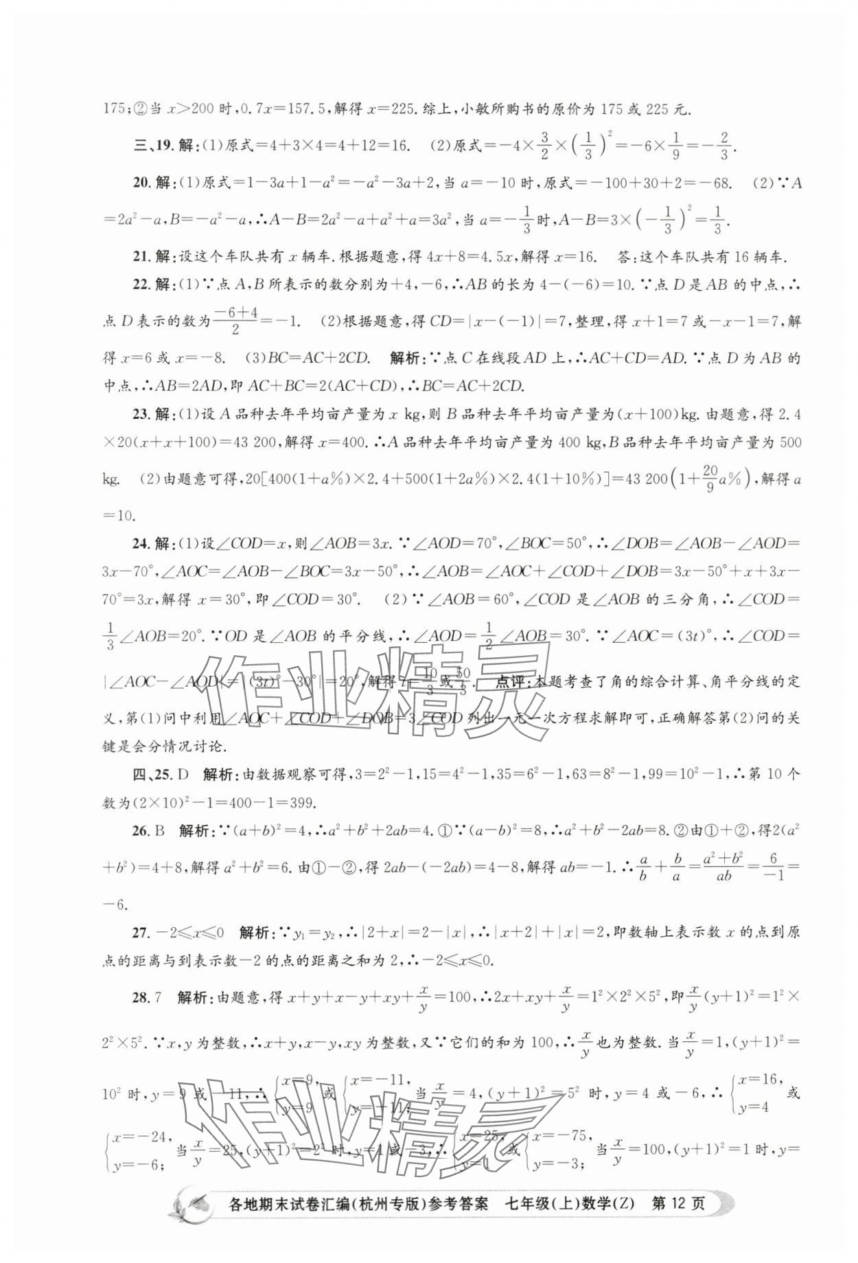 《2023年孟建平各地期末试卷汇编七年级数学上册浙教版杭州专版》