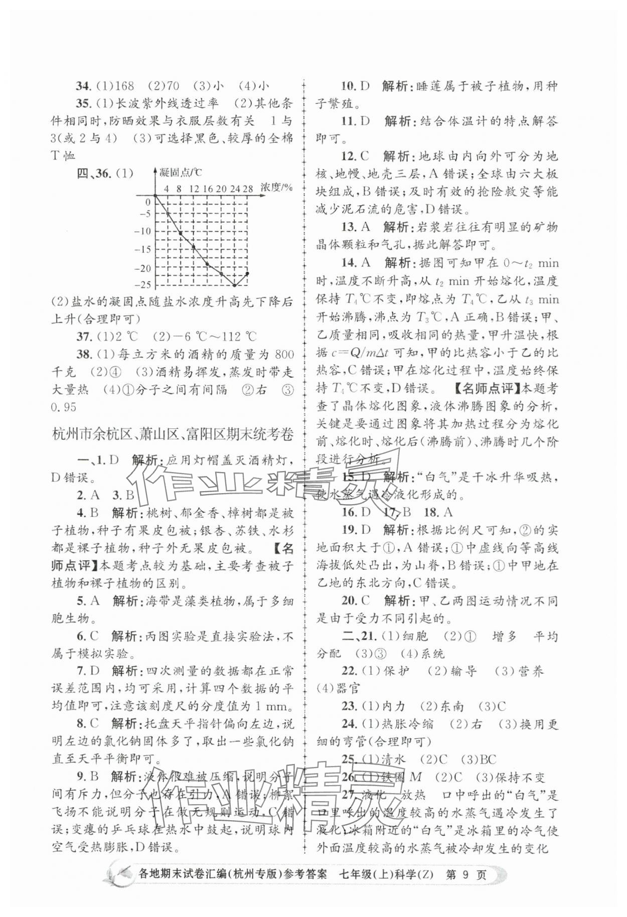 注:目前有些书本章节名称可能整理的还不是很完善,但都是按照顺序排列的,请同学们按照顺序仔细查找。练习册 2023年孟建平各地期末试卷汇编七年级科学上册浙教版杭州专版 答案主要是用来给同学们做完题方便对答案用的,请勿直接抄袭。